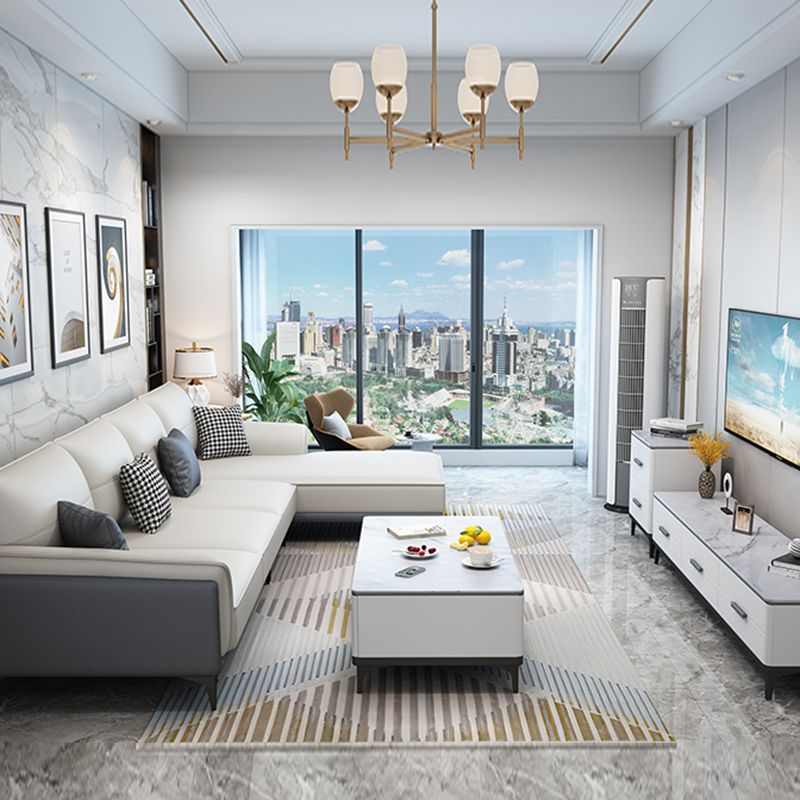 Pain en cuir en cuir canapé sectionnel canapé à bras évasé et chaise