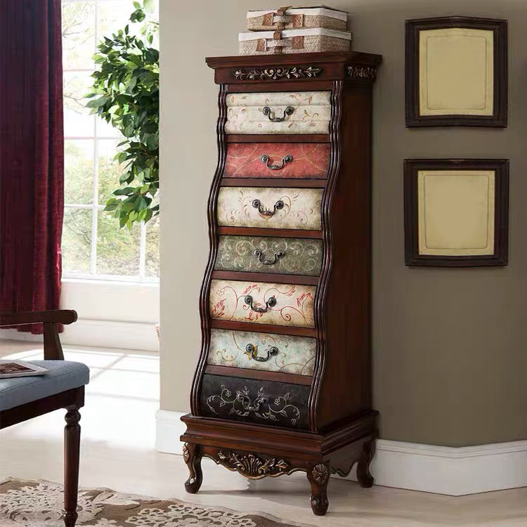 Coffre en bois en détresse moderne du milieu du siècle 7- tiroir rectangle accent coffre