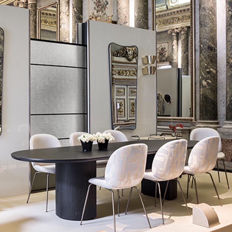 Table à manger en bois massif ovale meubles modernes blancs-noir avec double piédestal pour le bureau