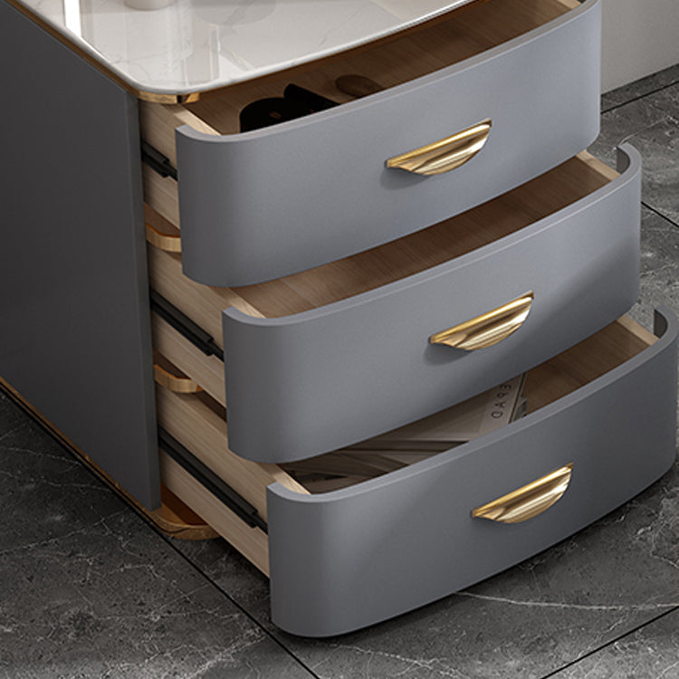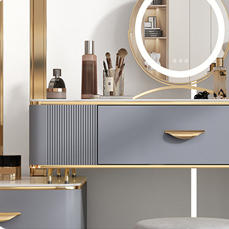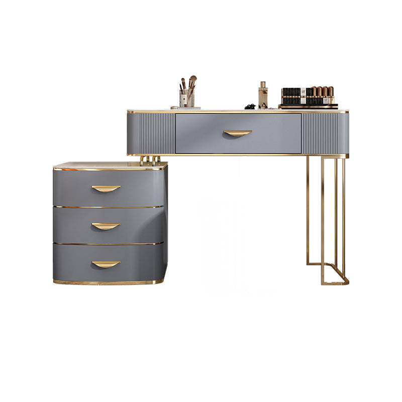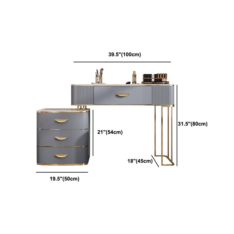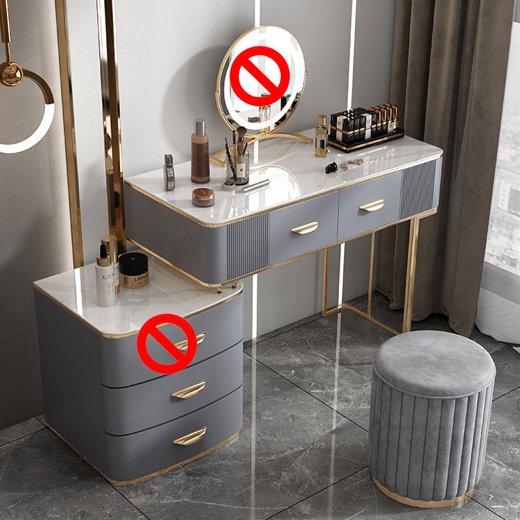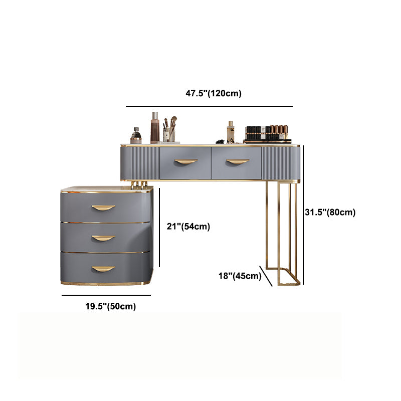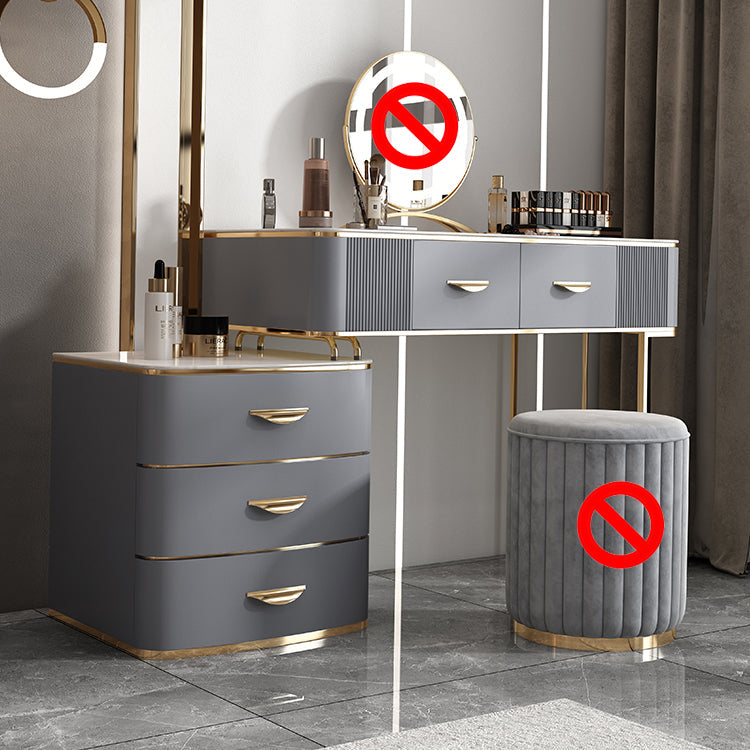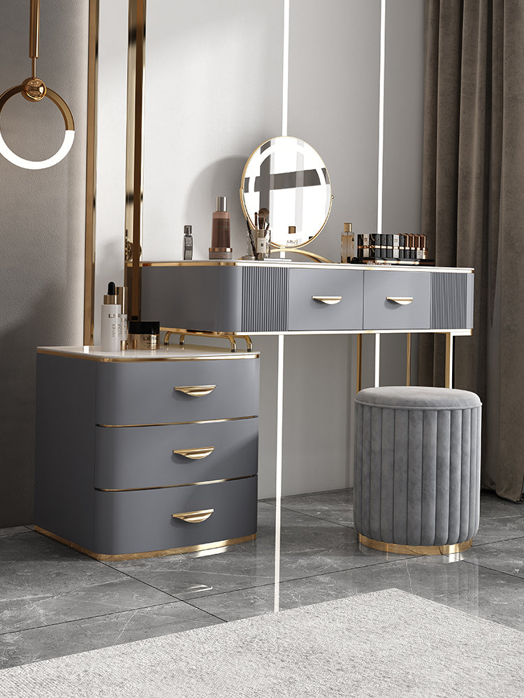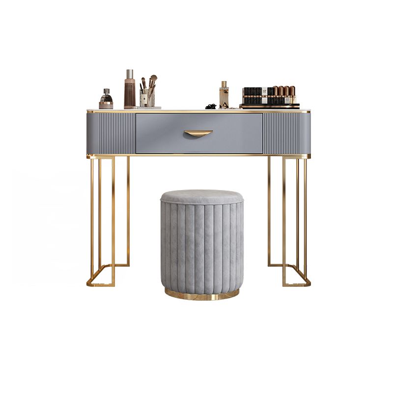 Dusineurs en bois massif Ensemble de vanité avec haut en pierre et tabouret rembourré en gris