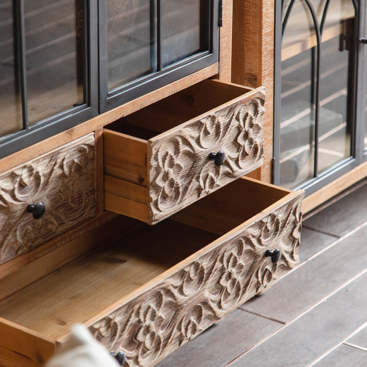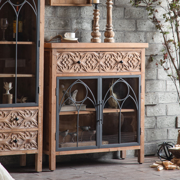 Portes en verre d'armoires curio traditionnelles en bois avec tiroirs