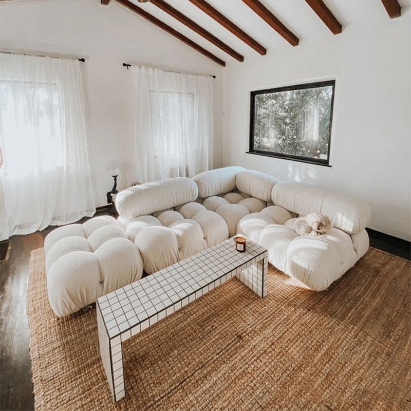 Canapé de dos biscuit contemporain 26,38 "haut de gamme de laine haut pour le salon, blanc