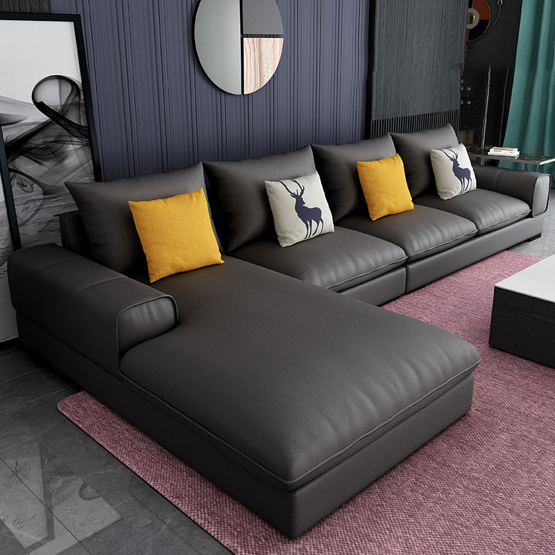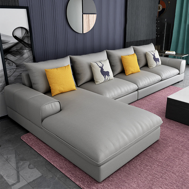 Section contemporaine en L avec oreiller en dos et bras encastrés pour 4 personnes