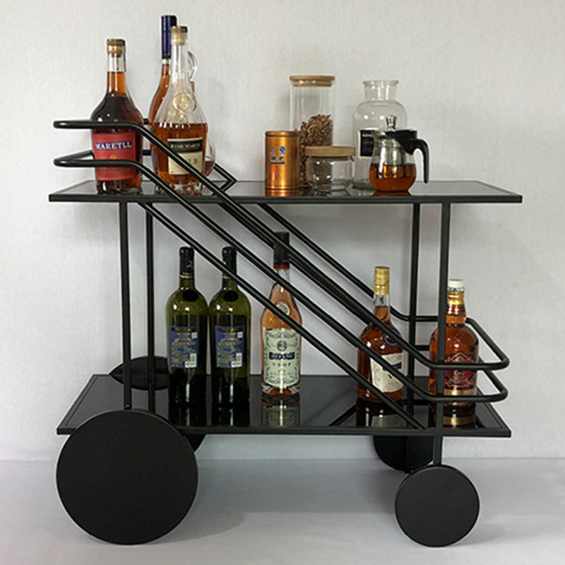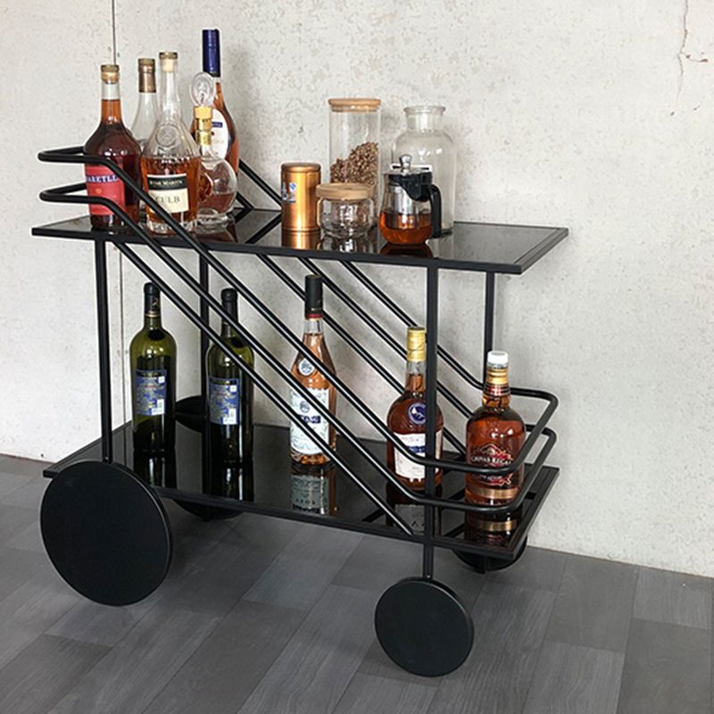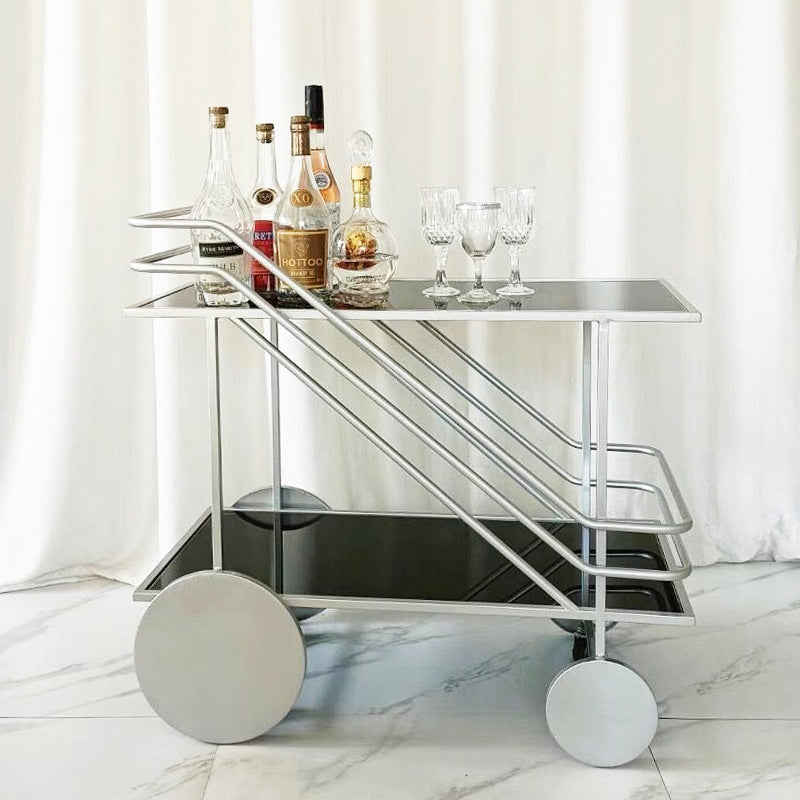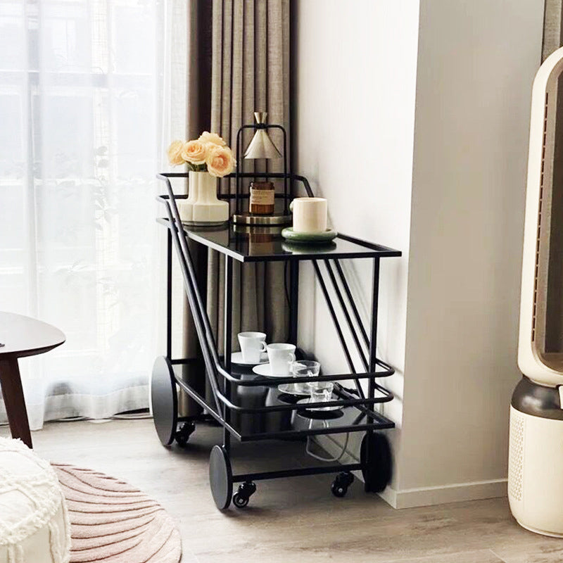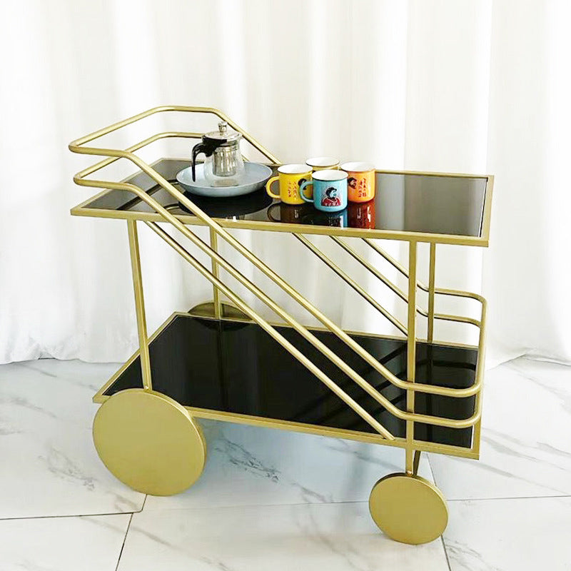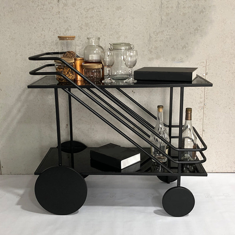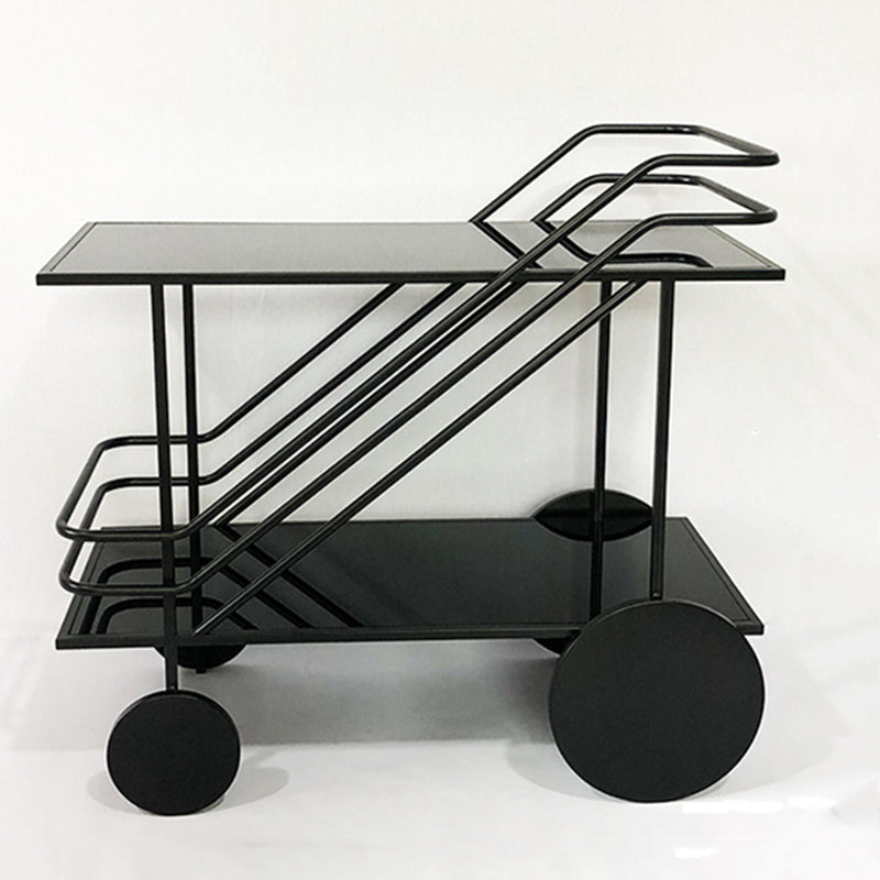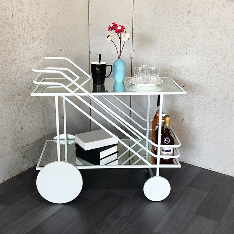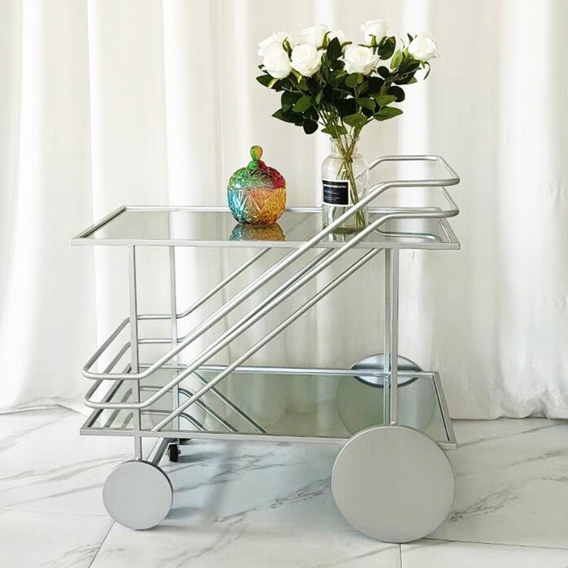 Table de préparation moderne en verre roulant ouvrir un chariot de cuisine rectangulaire