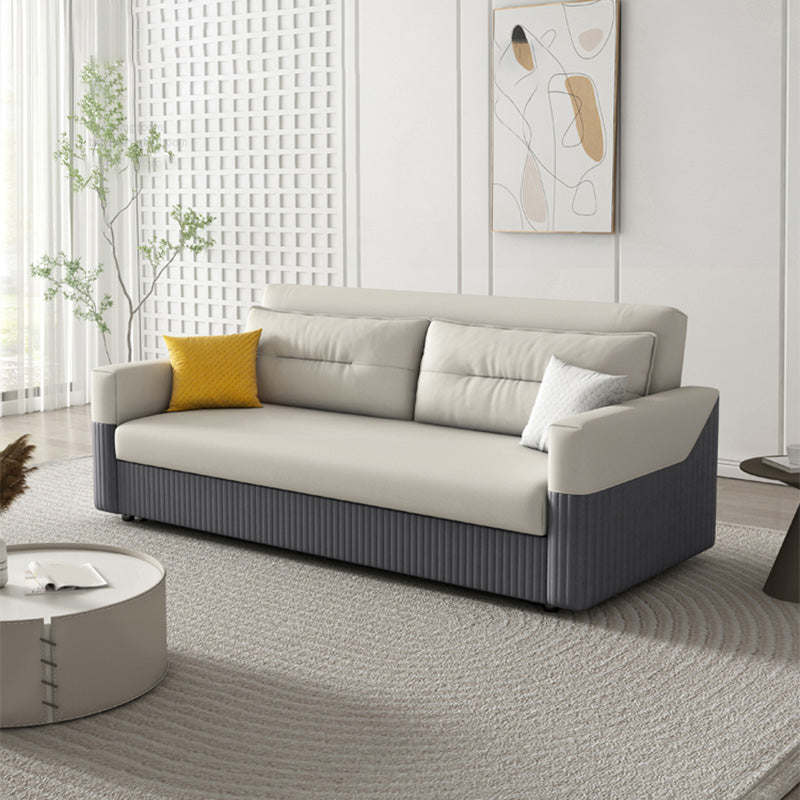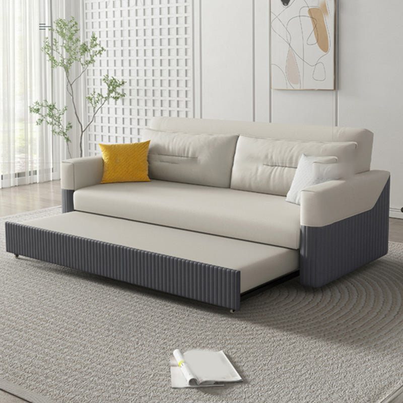Canapé-canapé en cuir en cuir gris et blanc canapé-lit avec cadre en bois