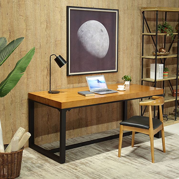 Bureau brun industriel bureau d'écriture en bois massif avec des jambes en métal