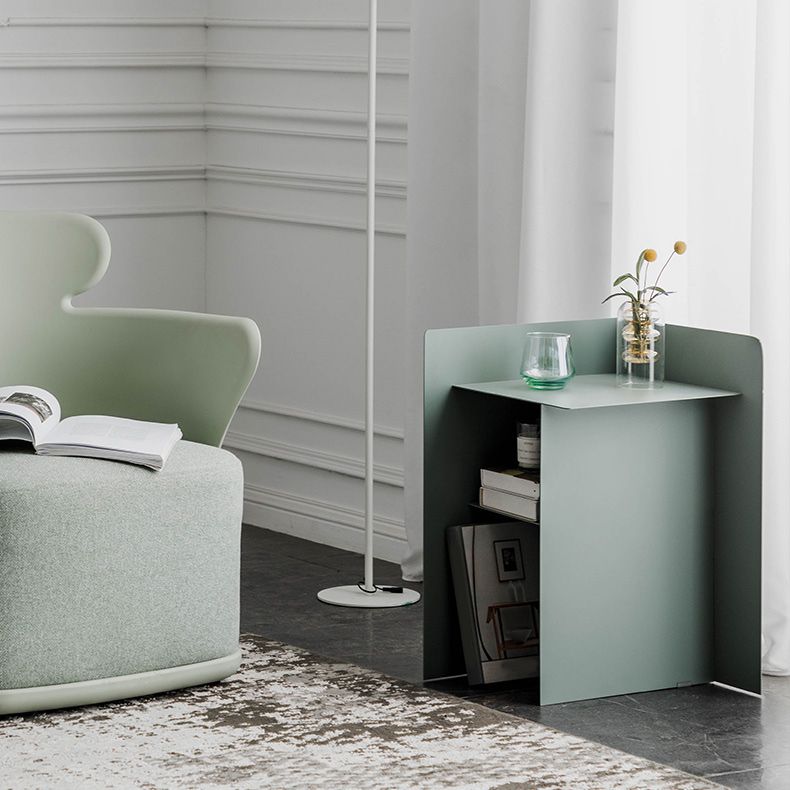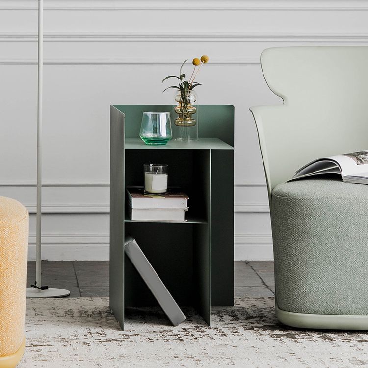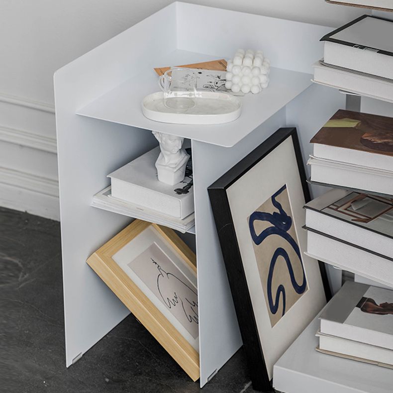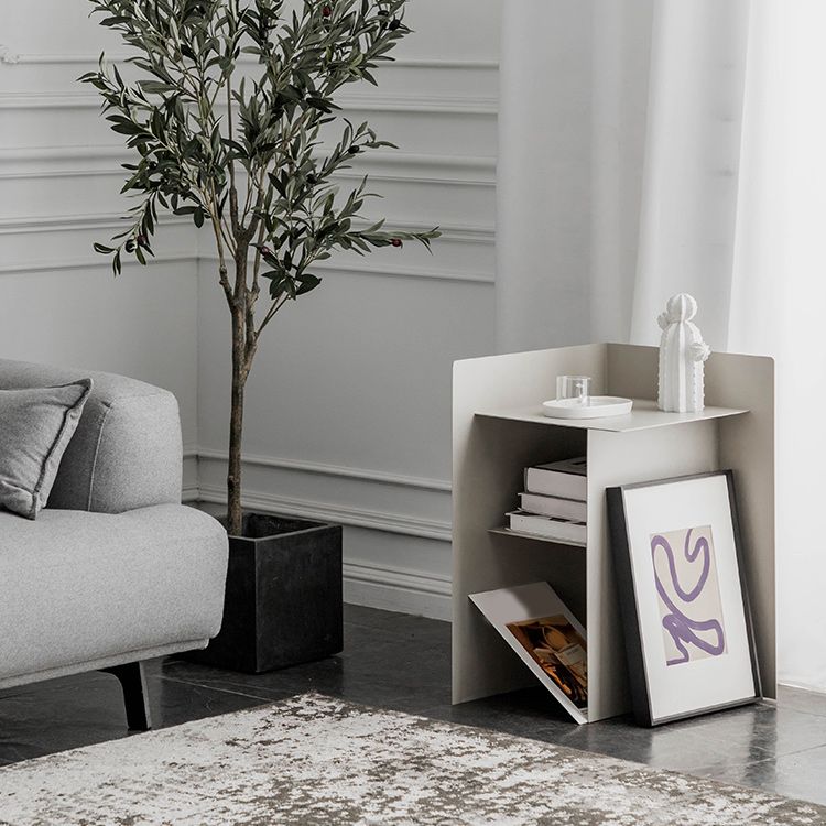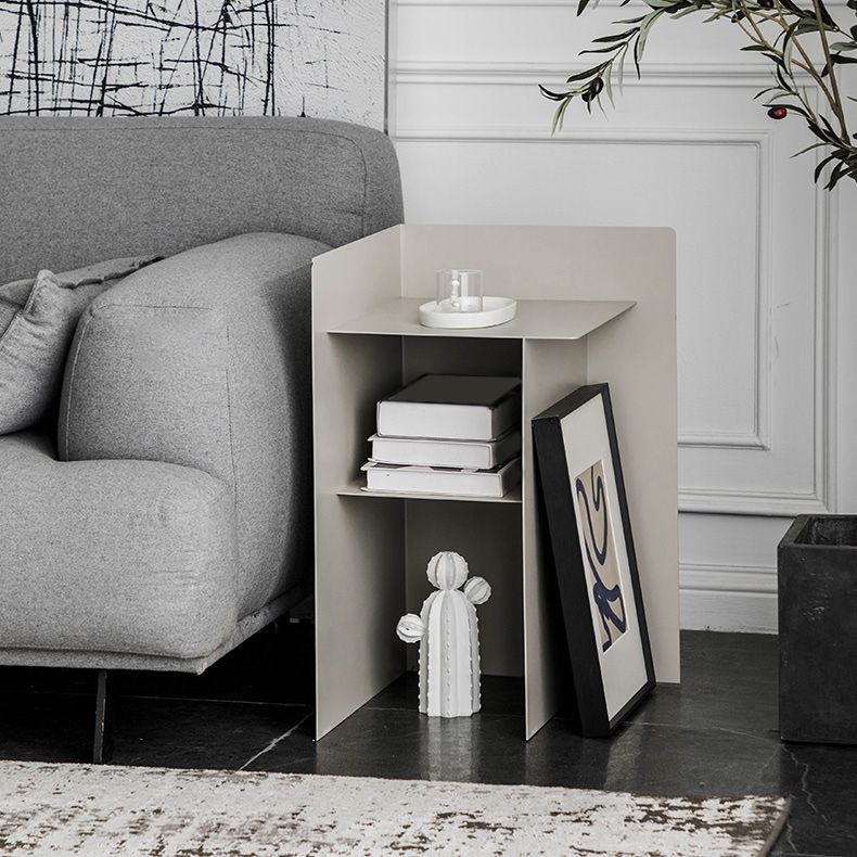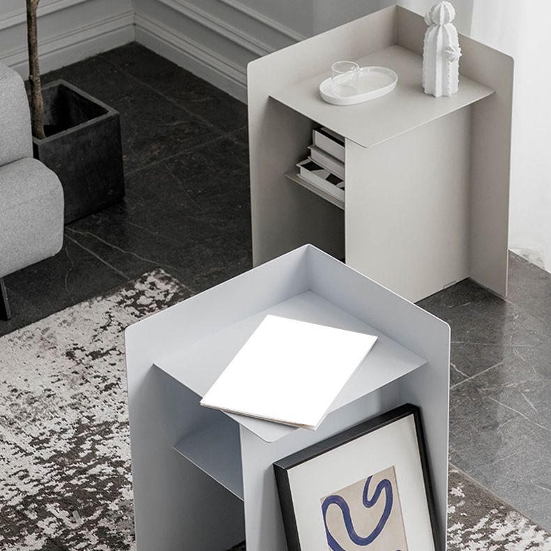 Table de bout abstraite de métal table de coin du milieu du siècle avec étagère