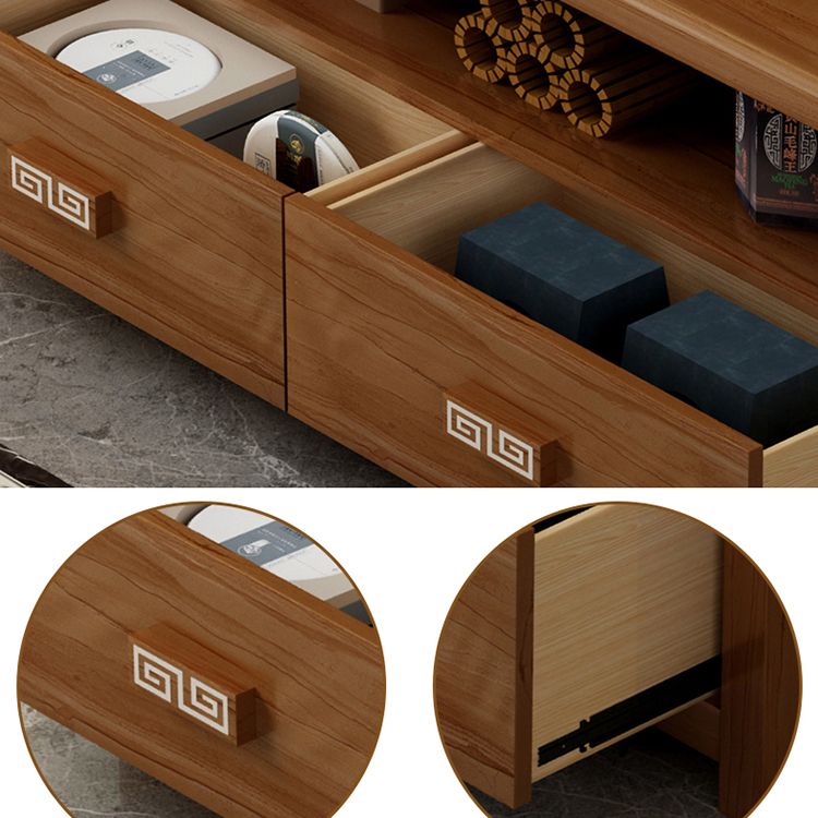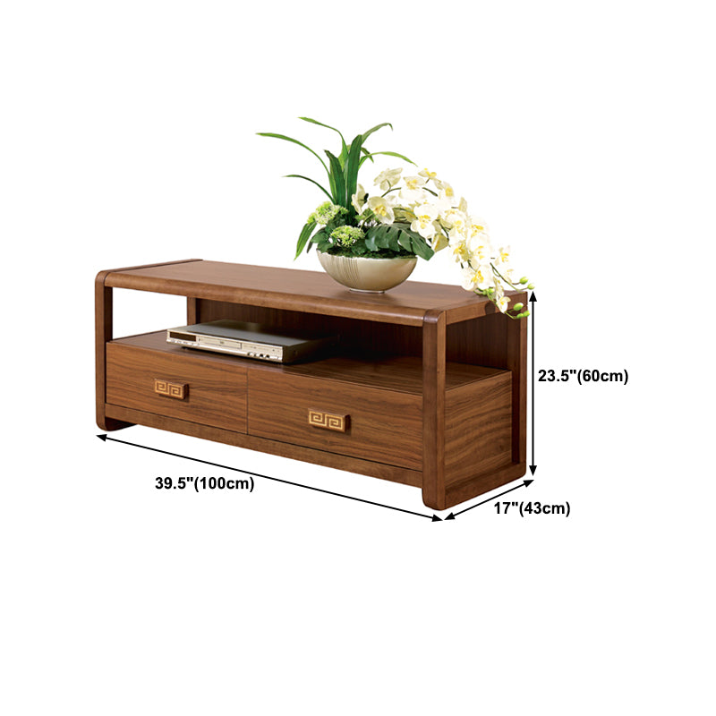 Meuble TV en bois d'hévéa marron Meuble TV style contemporain avec 2 tiroirs