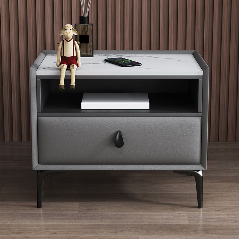 Nightstand HOP de 20 pouces moderne Horaire de rangement en pierre 1 Les jambes de tirage incluent la table de nuit