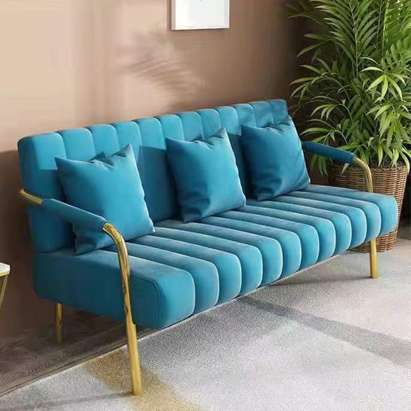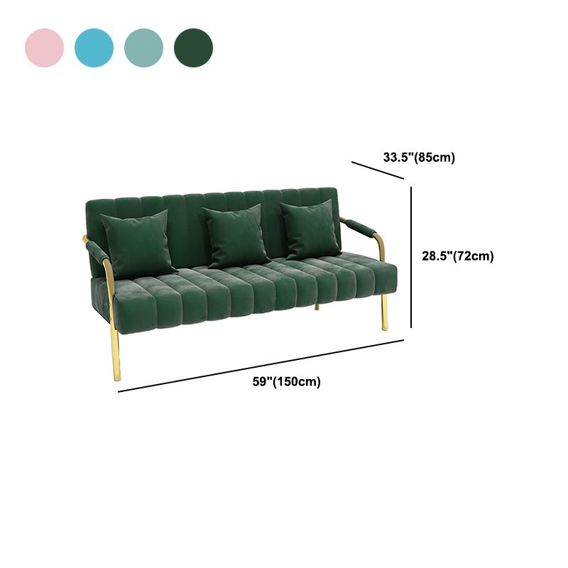 Canapé en velours avec 3 oreillers bras carré pour le salon 3 places