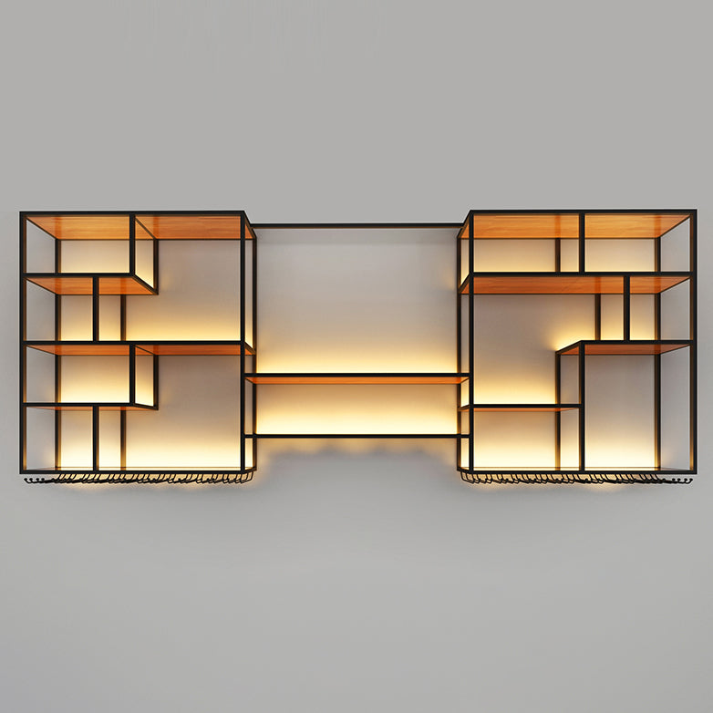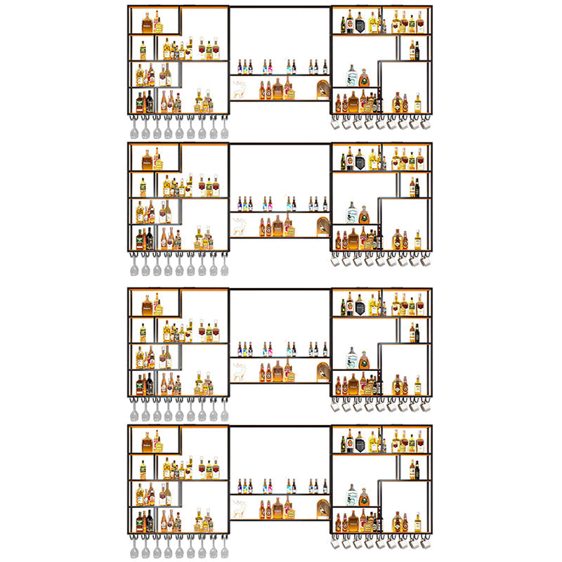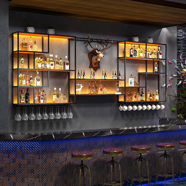 Porte-vides muraux en bois et porte-vin en métal en marron et noir