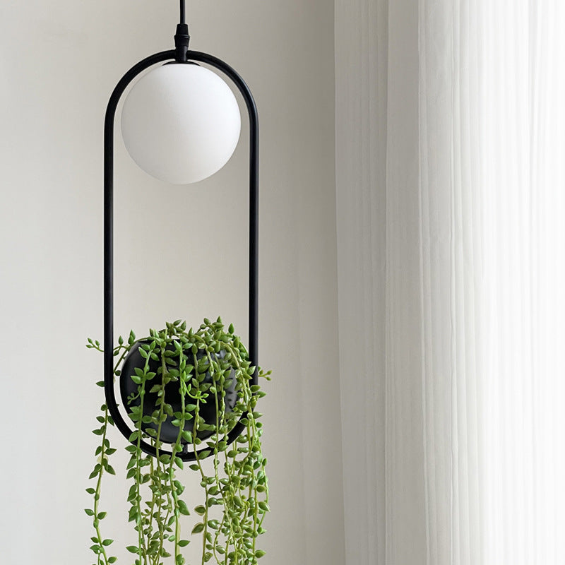 Lampe suspendue industrielle en métal noir, fausse plante en Pot, à 1 ampoule, avec Design d'ampoule nue