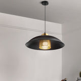 Plafonnier suspendu en fer noir, 1 tête, bol peu profond, Style usine, avec écran en maille de laiton à l'intérieur