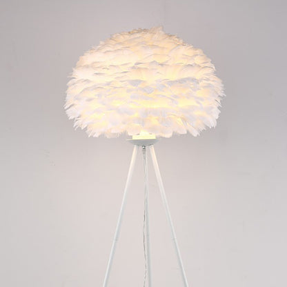 Lampadaire de salon à 1 lumière, lampe sur pied minimaliste noir-blanc avec abat-jour en plumes en forme de dôme