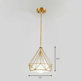 1-Light Pendant Light Antique Diamond Cage Iron Hanging Light Fixture for Dining Room Gold White Clearhalo 'Art Deco Pendants' 'Black' 'Cast Iron' 'Ceiling Lights' 'Ceramic' 'Crystal' 'Industrial Pendants' 'Industrial' 'Metal' 'Middle Century Pendants' 'Pendant Lights' 'Pendants' 'Rustic Pendants' 'Tiffany' Lighting' 2241497