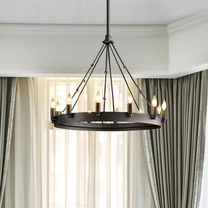 Lustre suspendu rond à 12/18 lumières, suspension traditionnelle en métal noir avec motif bougie