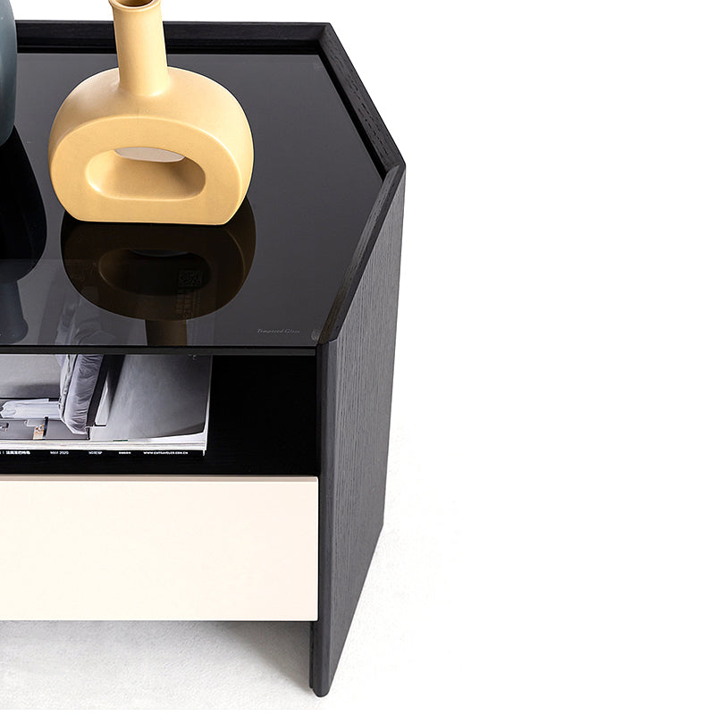 18 pouces H Night Table Glass Top Open Rangement 1 Drawer Lit Striche