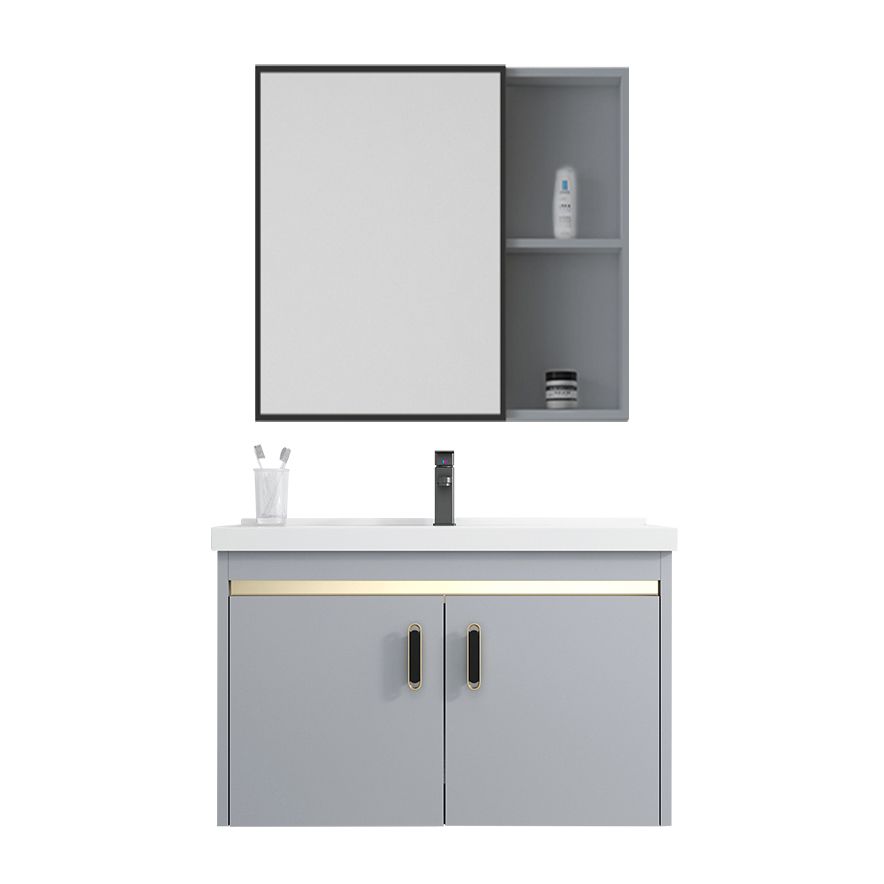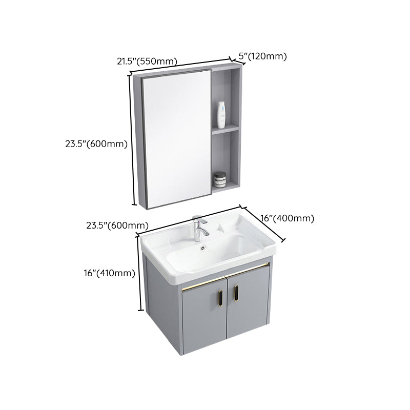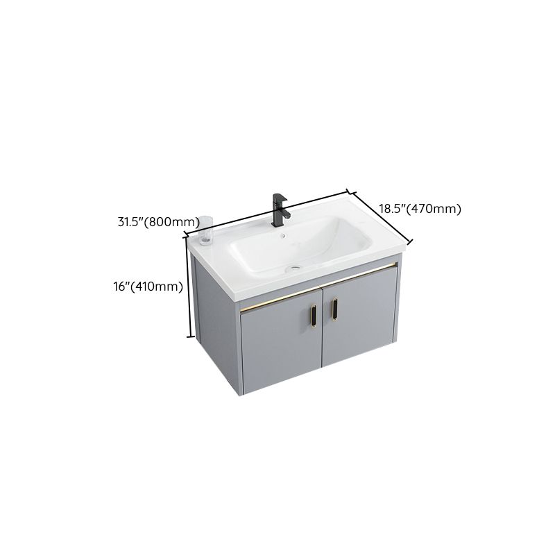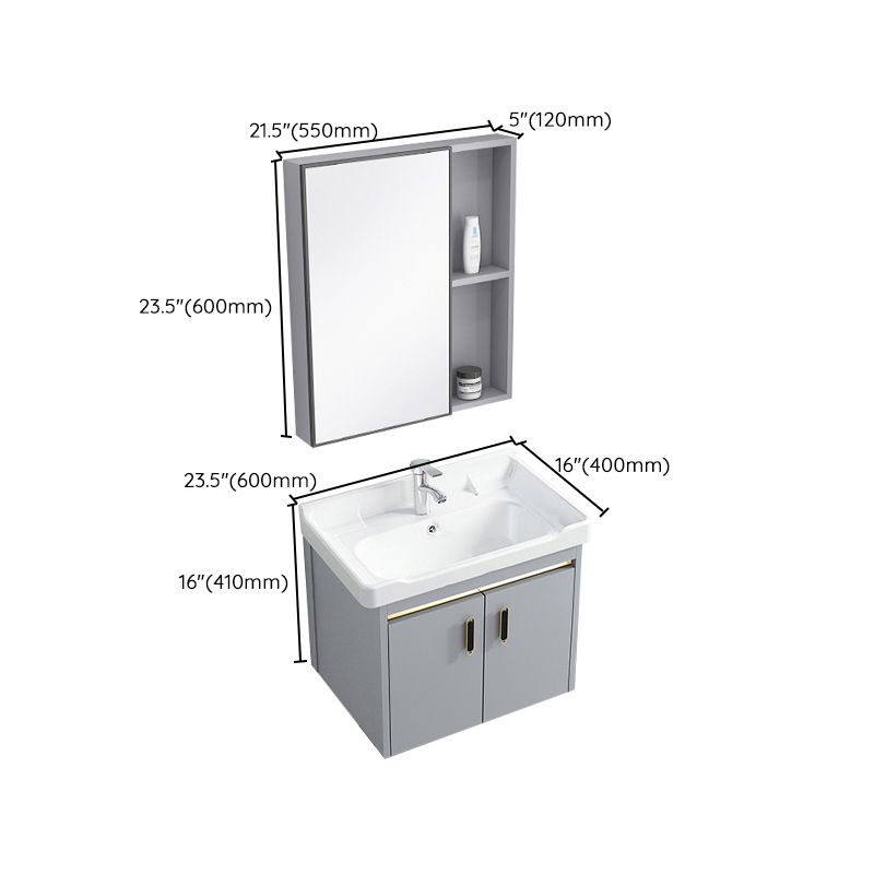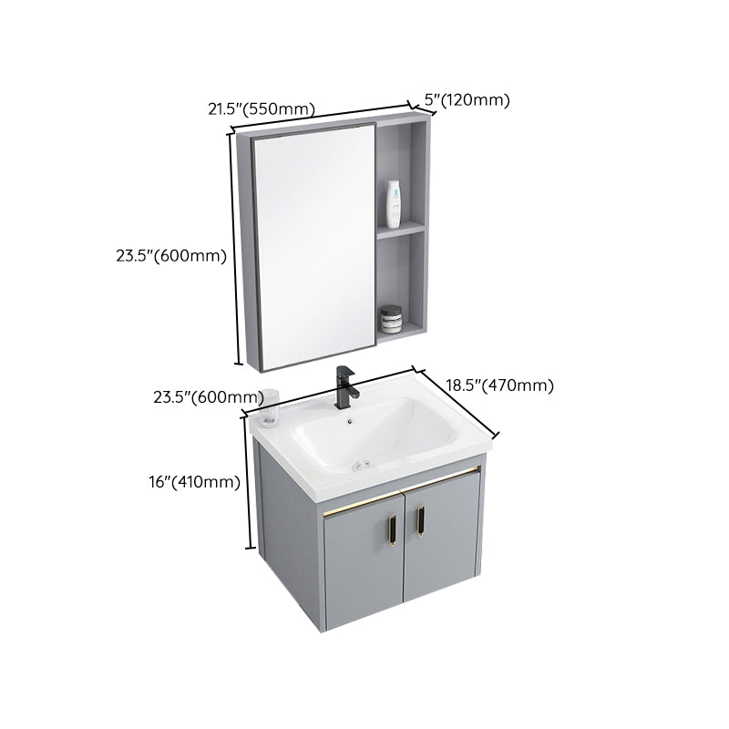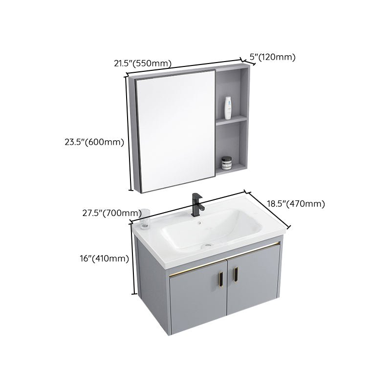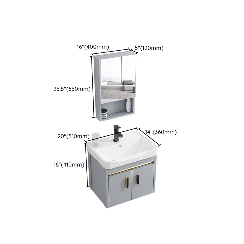 2 Doors Vanity Grey Mirror Wall Mounted Metal Frame Rectangular Glam Vanity with Faucet Clearhalo 'Bathroom Remodel & Bathroom Fixtures' 'Bathroom Vanities' 'bathroom_vanities' 'Home Improvement' 'home_improvement' 'home_improvement_bathroom_vanities' 1200x1200_c2cf0e05-b676-4765-bb49-8dff0d8c1f29