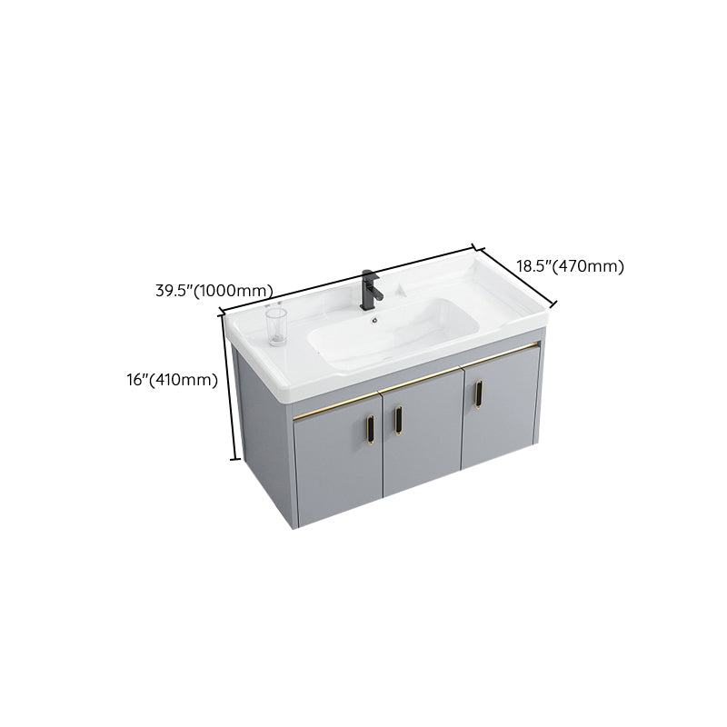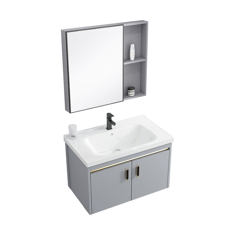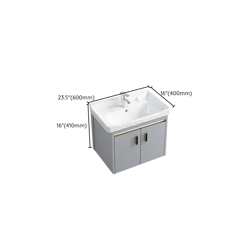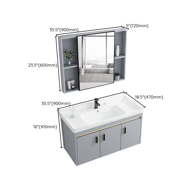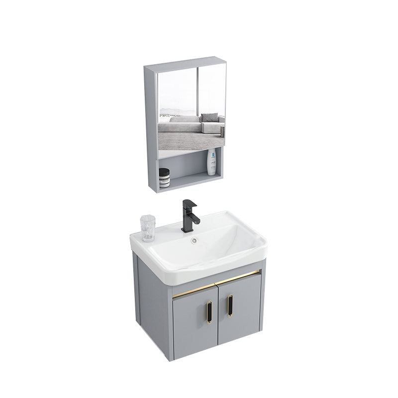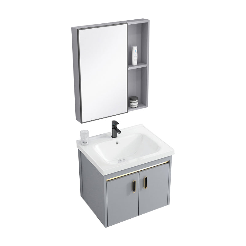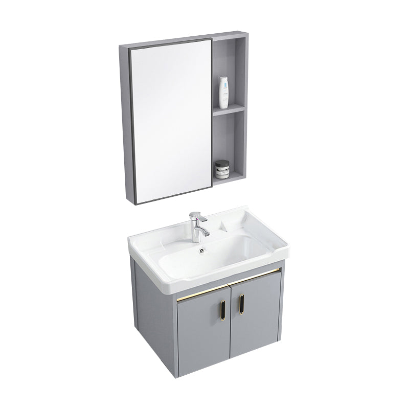 2 Doors Vanity Grey Mirror Wall Mounted Metal Frame Rectangular Glam Vanity with Faucet Clearhalo 'Bathroom Remodel & Bathroom Fixtures' 'Bathroom Vanities' 'bathroom_vanities' 'Home Improvement' 'home_improvement' 'home_improvement_bathroom_vanities' 1200x1200_c2cf0e05-b676-4765-bb49-8dff0d8c1f29