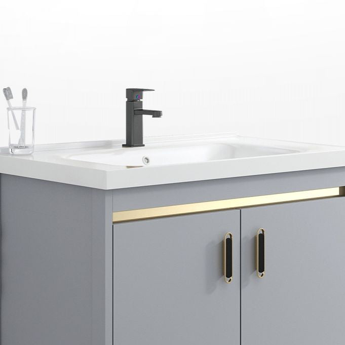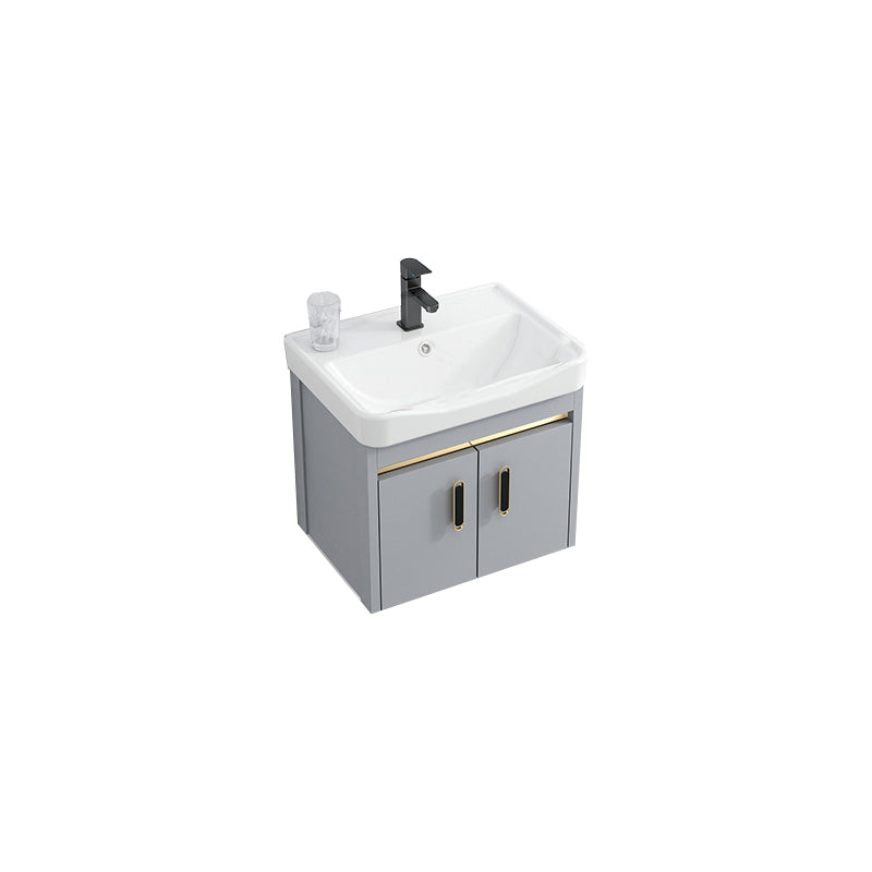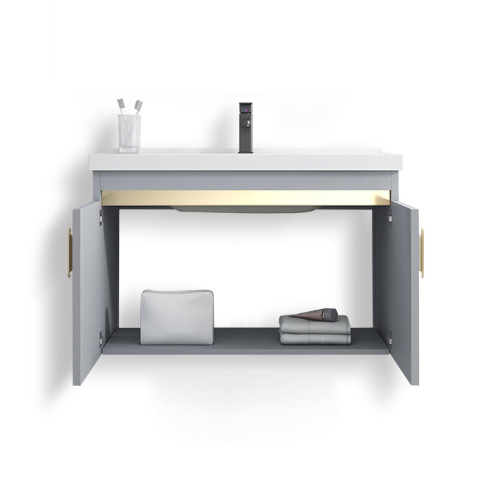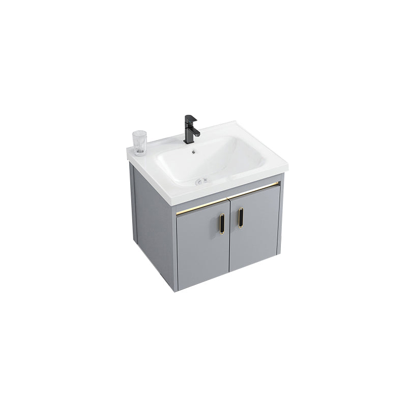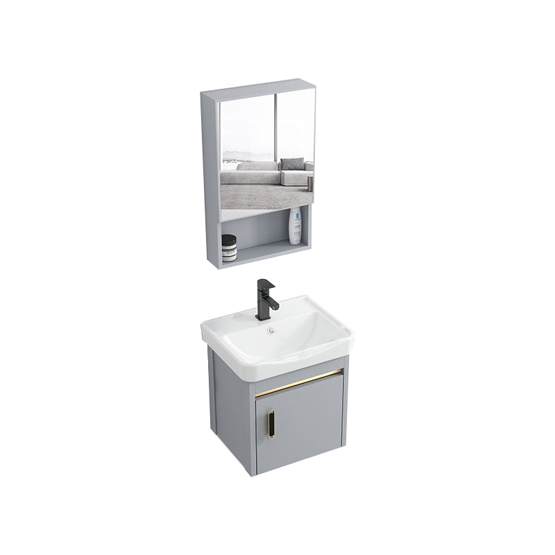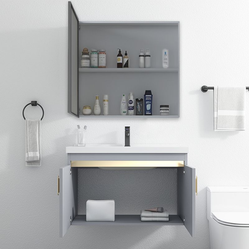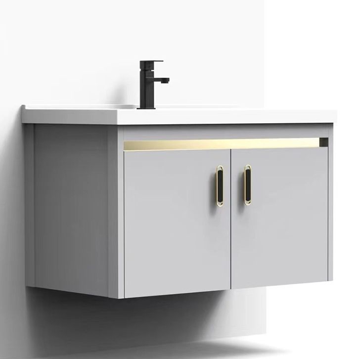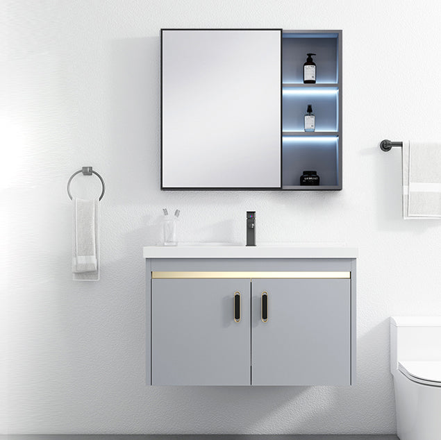 2 Doors Vanity Grey Mirror Wall Mounted Metal Frame Rectangular Glam Vanity with Faucet Clearhalo 'Bathroom Remodel & Bathroom Fixtures' 'Bathroom Vanities' 'bathroom_vanities' 'Home Improvement' 'home_improvement' 'home_improvement_bathroom_vanities' 1200x1200_c2cf0e05-b676-4765-bb49-8dff0d8c1f29
