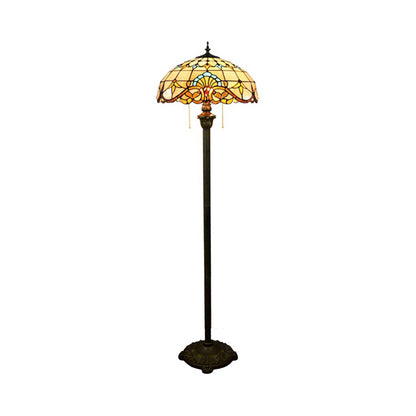 2 Heads Scalloped Dome Floor Lamp Baroque Brown Stained Glass Standing Light with Pull Chain for Living Room Clearhalo 'Floor Lamps' 'Lamps' Lighting' 2187274