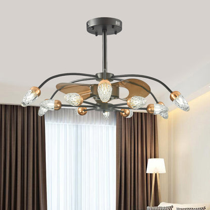 3 Blades 12 Bulbs Ceiling Fan Light Traditional Scrolls Crystal Teardrop Shade Semi Flush in Black, 36.5" Wide Clearhalo 'Ceiling Fans with Lights' 'Ceiling Fans' Lighting' 1409164