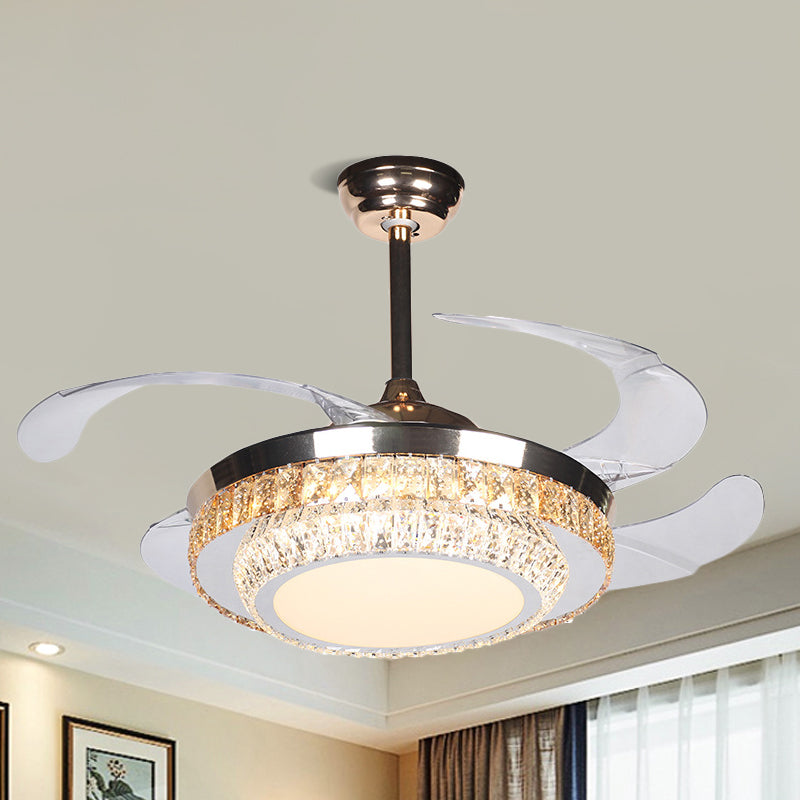42" Wide LED Semi Flush Contemporary Round Rectangular-Cut Crystals 4 Blades Pendant Fan Lamp in Silver Clearhalo 'Ceiling Fans with Lights' 'Ceiling Fans' 'Modern Ceiling Fans' 'Modern' Lighting' 1418910