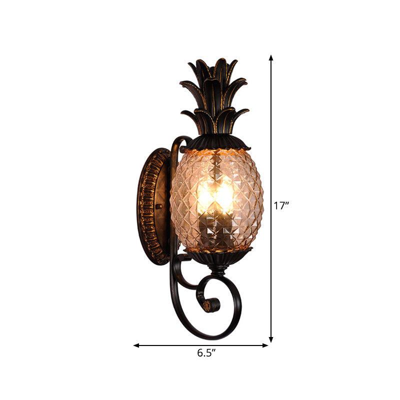 Applique murale antique en forme d'ananas, 1 ampoule, en verre nervuré gris fumé, en laiton, pour l'extérieur