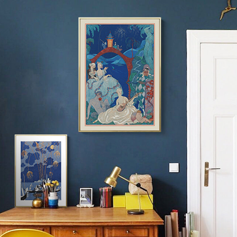 Peinture asiatique imprimée pavillon sur toile, décoration murale pastel pour salle familiale, texturée