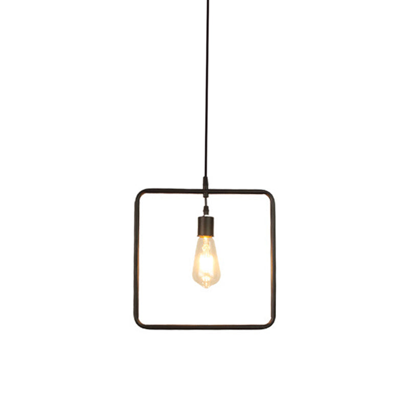Black 1 Head Pendant Light Fixture Loft Iron Flower/Square/Round Frame Ceiling Hang Lamp over Table Clearhalo 'Art Deco Pendants' 'Black' 'Cast Iron' 'Ceiling Lights' 'Ceramic' 'Crystal' 'Industrial Pendants' 'Industrial' 'Metal' 'Middle Century Pendants' 'Pendant Lights' 'Pendants' 'Rustic Pendants' 'Tiffany' Lighting' 1969129