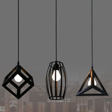 Lampe à Suspension noire à 1 tête, plafonnier industriel en fer géométrique avec Cage suspendue pour Restaurant