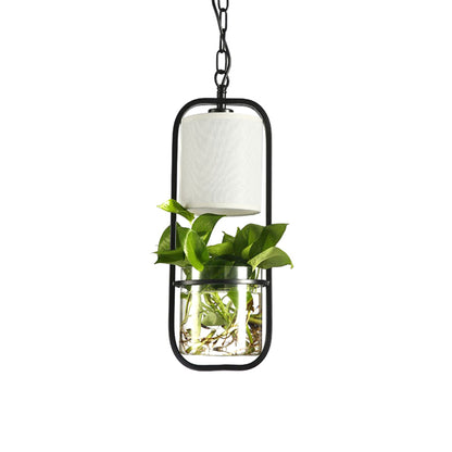 Black/Gold 1-Bulb Suspension Lamp Country Fabric Barrel/Clear Glass Bell Shade Drop Pendant with Plant Container Clearhalo 'Art Deco Pendants' 'Black' 'Cast Iron' 'Ceiling Lights' 'Ceramic' 'Crystal' 'Industrial Pendants' 'Industrial' 'Metal' 'Middle Century Pendants' 'Pendant Lights' 'Pendants' 'Rustic Pendants' 'Tiffany' Lighting' 1911142