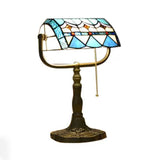 Blue/Orange 1 Light Table Lamp Tiffany Stylish Stainless Glass Rollover Shade Bankers Table Lamp with Pull Chain Blue Clearhalo 'Desk Lamps' 'Lamps' Lighting' 14882