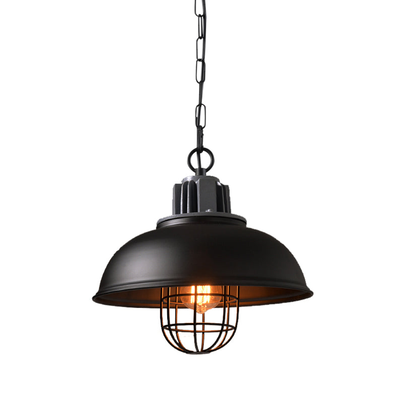 Bowl Dining Room Suspension Lighting Industrial Iron 1 Head Black/White Drop Pendant with Cage Clearhalo 'Art Deco Pendants' 'Black' 'Cast Iron' 'Ceiling Lights' 'Ceramic' 'Crystal' 'Industrial Pendants' 'Industrial' 'Metal' 'Middle Century Pendants' 'Pendant Lights' 'Pendants' 'Rustic Pendants' 'Tiffany' Lighting' 1969691