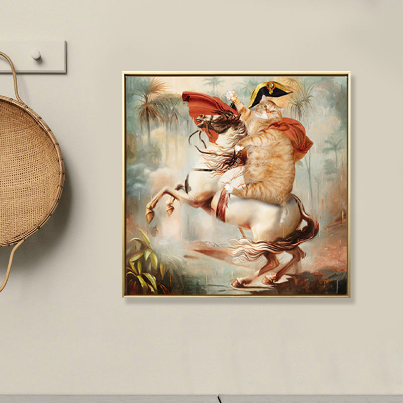 Brown Cat Knight Canvas Wall Art Animal Funky Textured Wall Decor for Boys Bedroom Clearhalo 'Arts' 'Canvas Art' 1860099