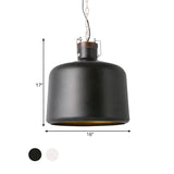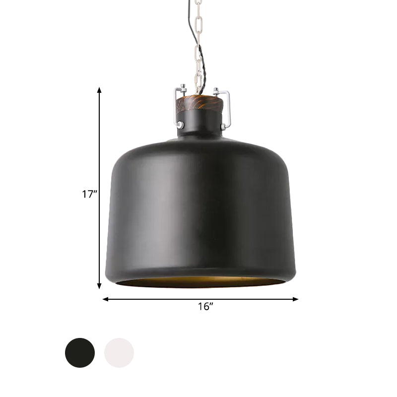 Bucket Restaurant Pendant Light Fixture Industrial Iron 1 Bulb Black/White Ceiling Suspension Lamp Clearhalo 'Art Deco Pendants' 'Black' 'Cast Iron' 'Ceiling Lights' 'Ceramic' 'Crystal' 'Industrial Pendants' 'Industrial' 'Metal' 'Middle Century Pendants' 'Pendant Lights' 'Pendants' 'Rustic Pendants' 'Tiffany' Lighting' 1474779