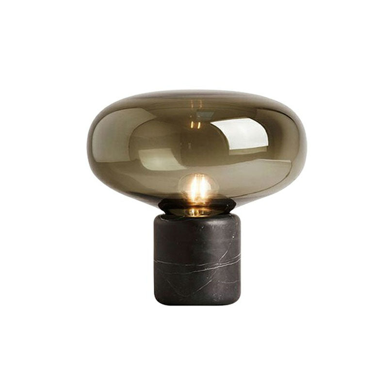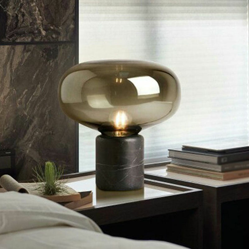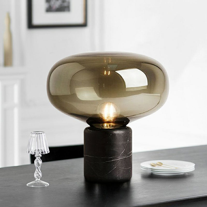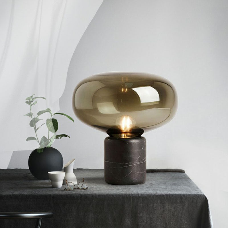 Lampe de table de chevet en verre en forme de capsule, lampe de table nordique à 1 ampoule avec base cylindrique en marbre