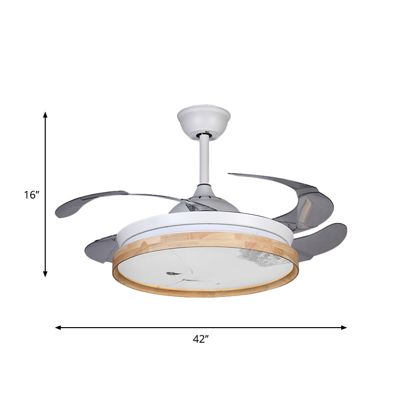 Circle Ceiling Fan Light Minimalism Acrylic White 4-Blade LED Semi Flush Mount with Wooden Detail, 42" Wide White Clearhalo 'Ceiling Fans with Lights' 'Ceiling Fans' 'Modern Ceiling Fans' 'Modern' Lighting' 1451675