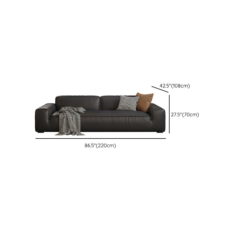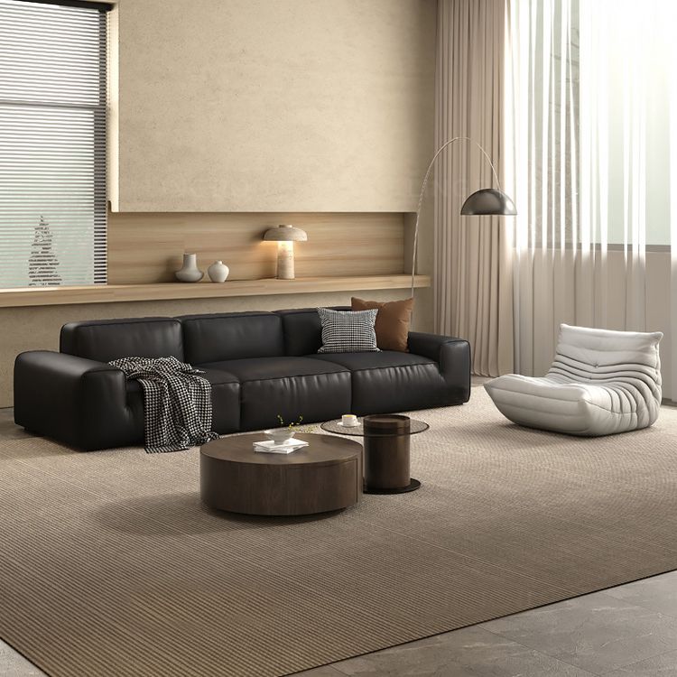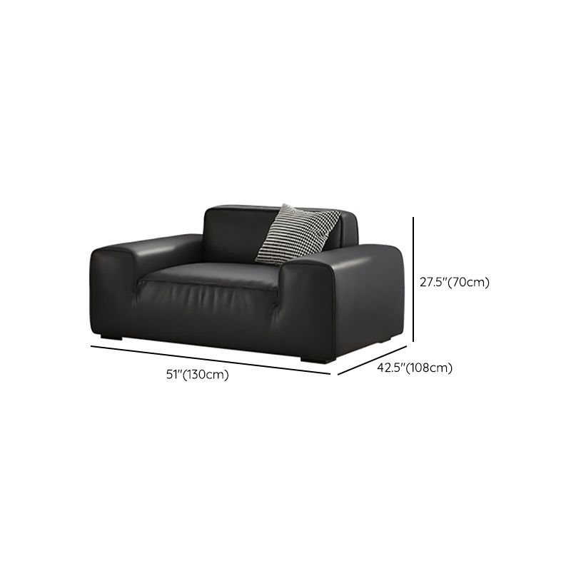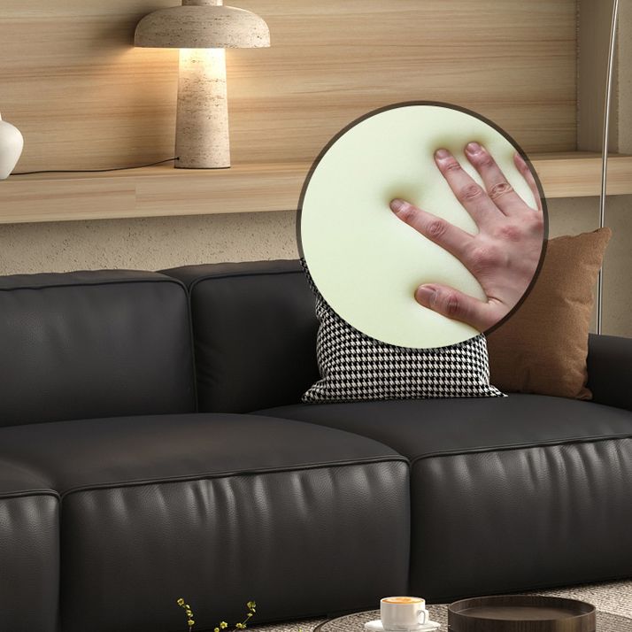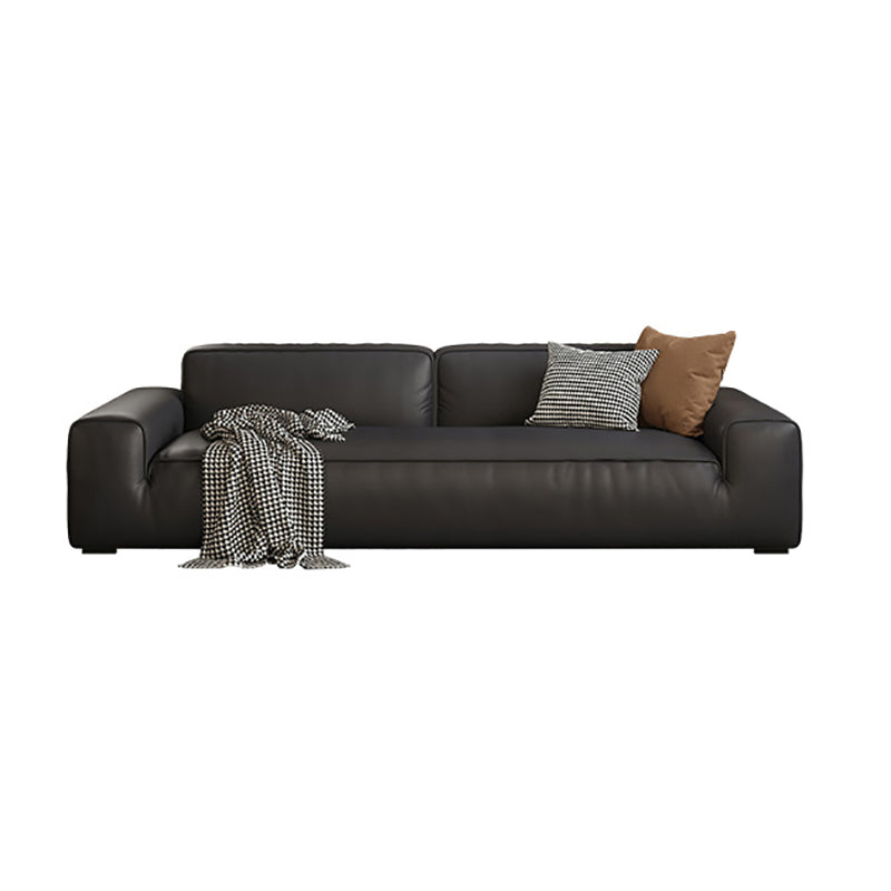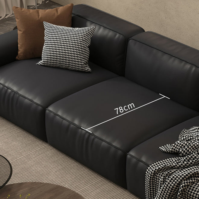 Canapé de bras carré en cuir authentique noir contemporain avec oreillers
