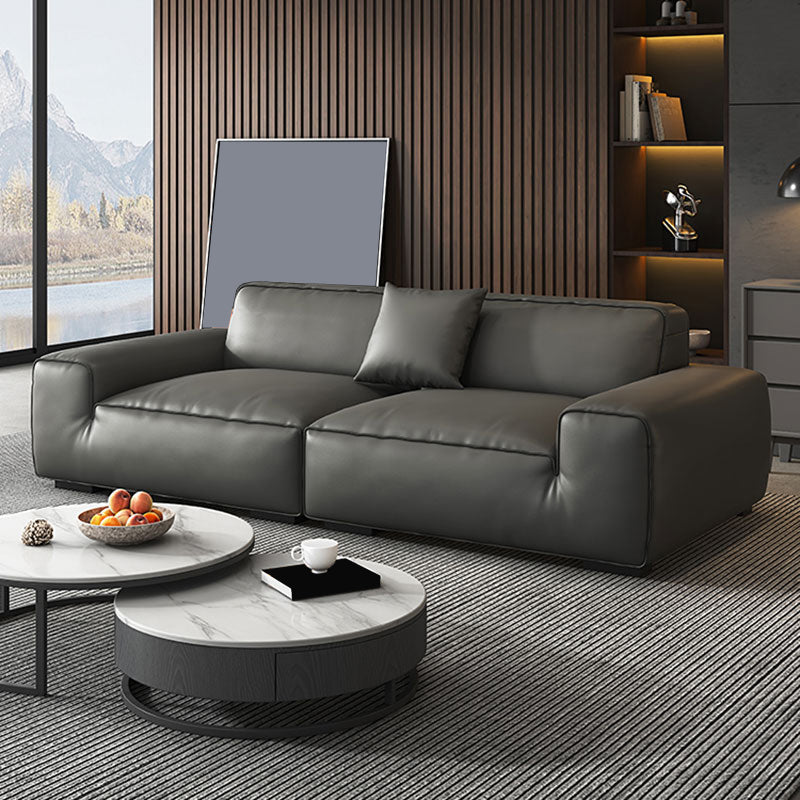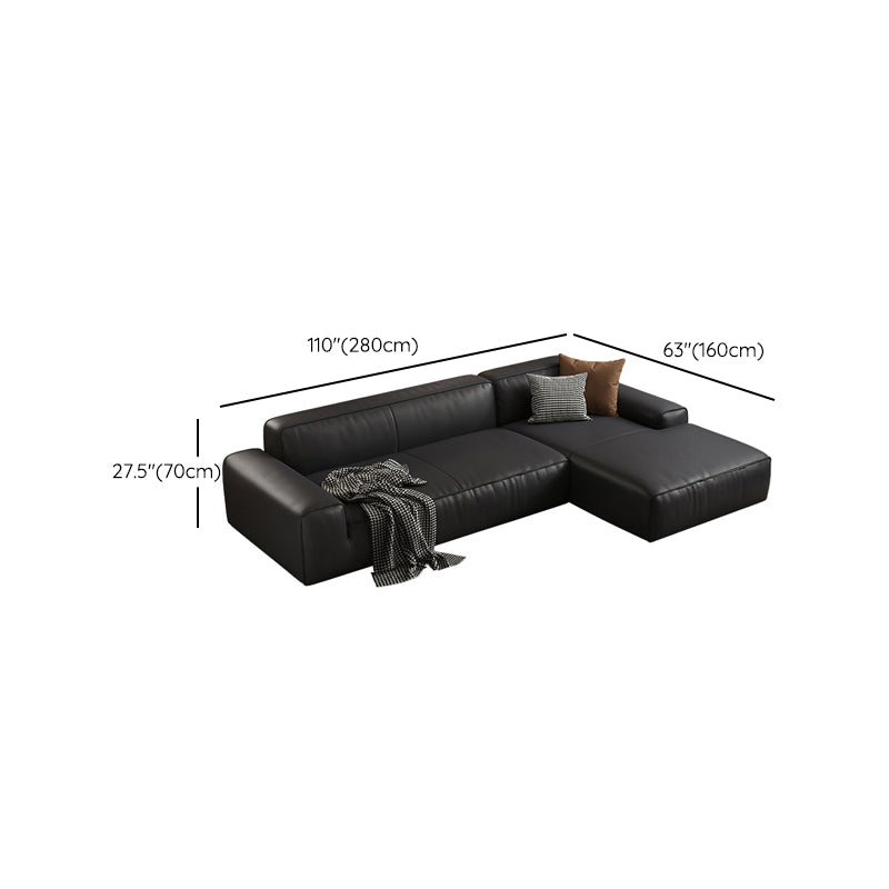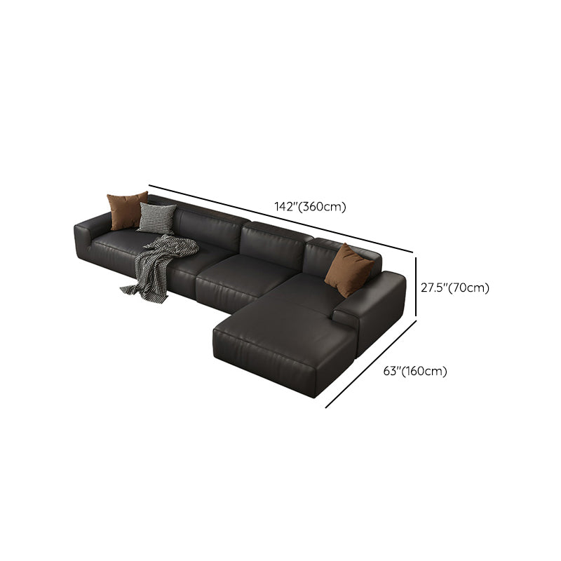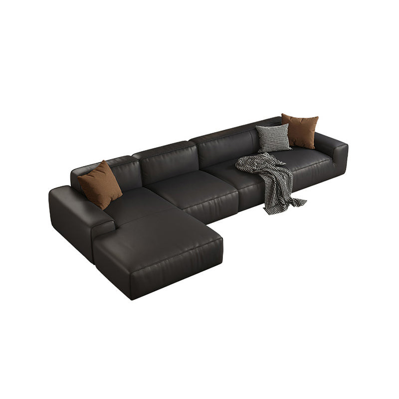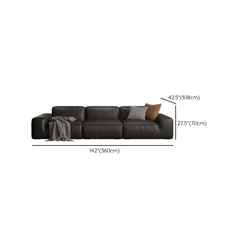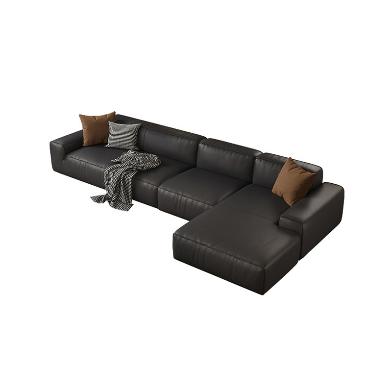 Canapé de bras carré en cuir authentique noir contemporain avec oreillers