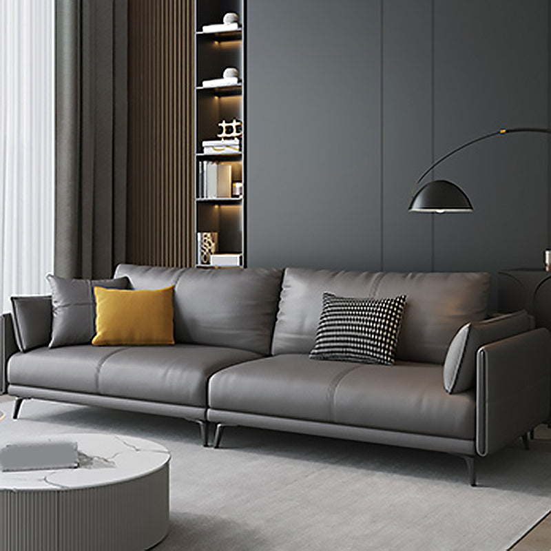Sofa standard contemporain authentique en cuir carré avec dos lâche pour le salon