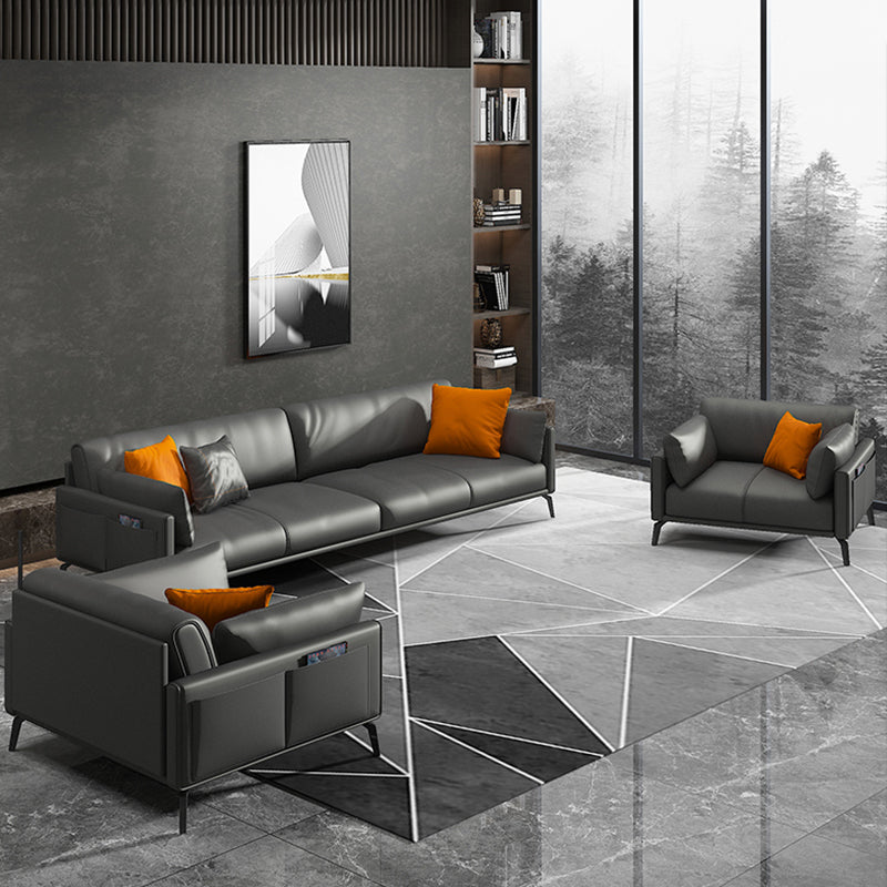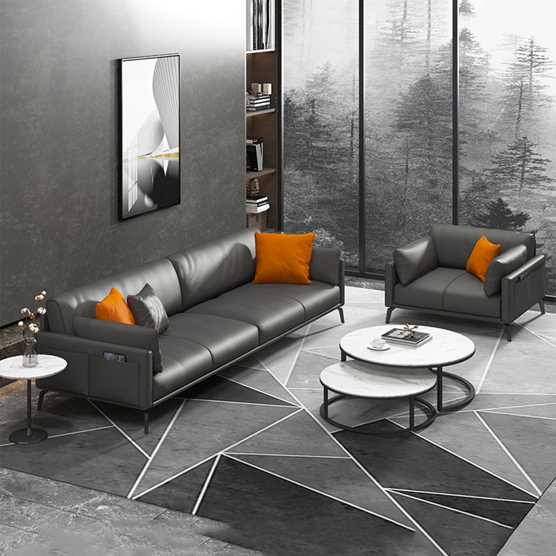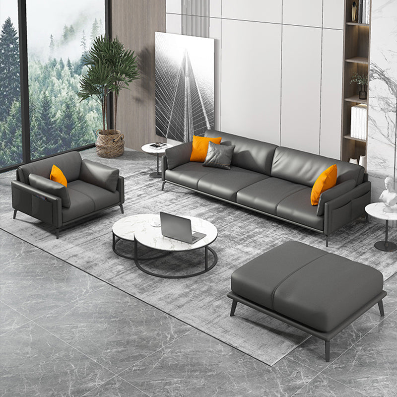 Canapé en cuir contemporain dans le dos lâche gris pour le salon
