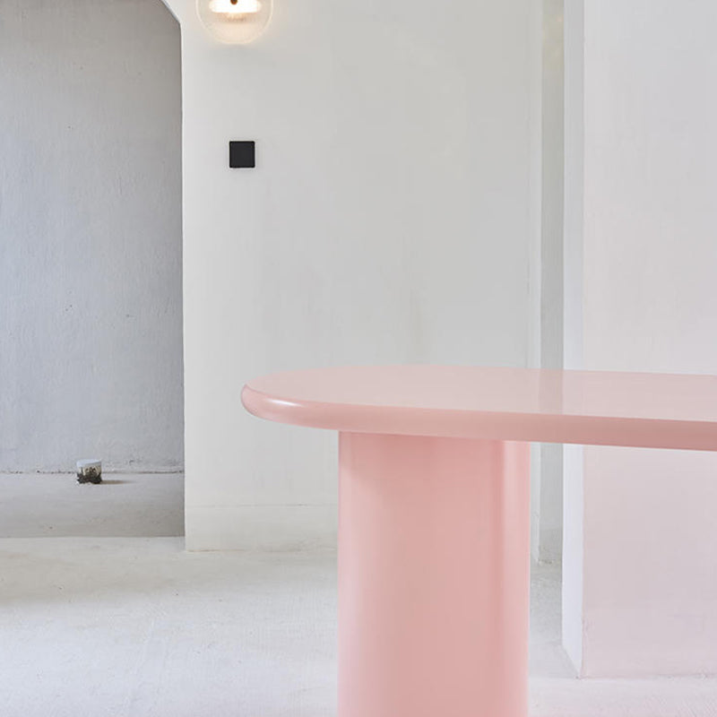 Bureau de bureau en bois de style contemporain Bureau de tâche de forme ovale avec 2 jambes en rose