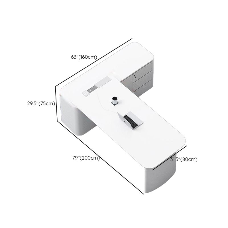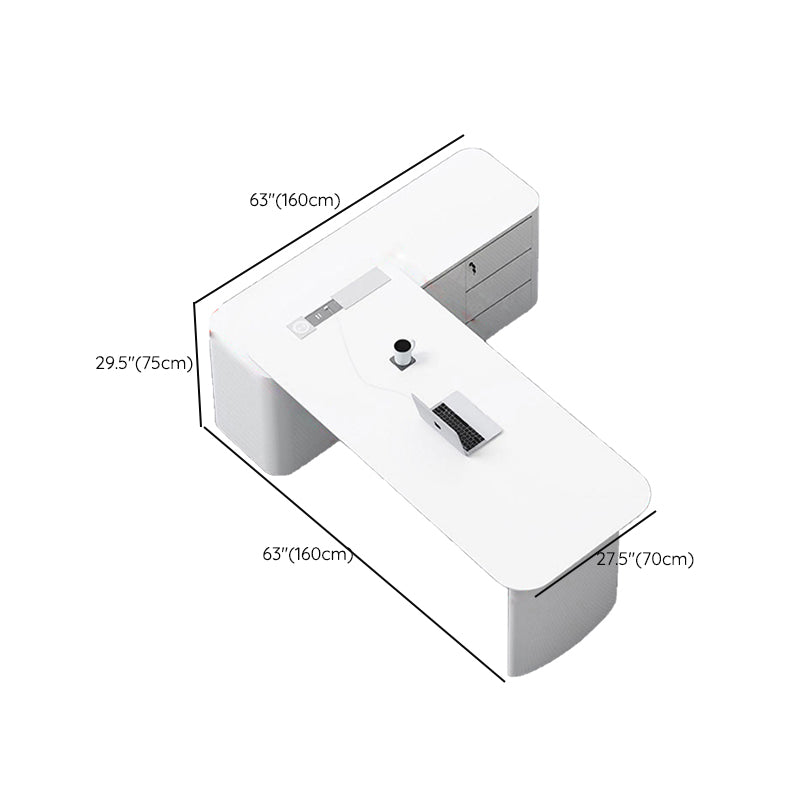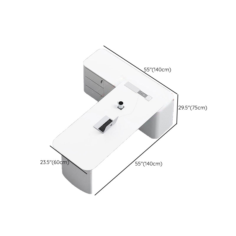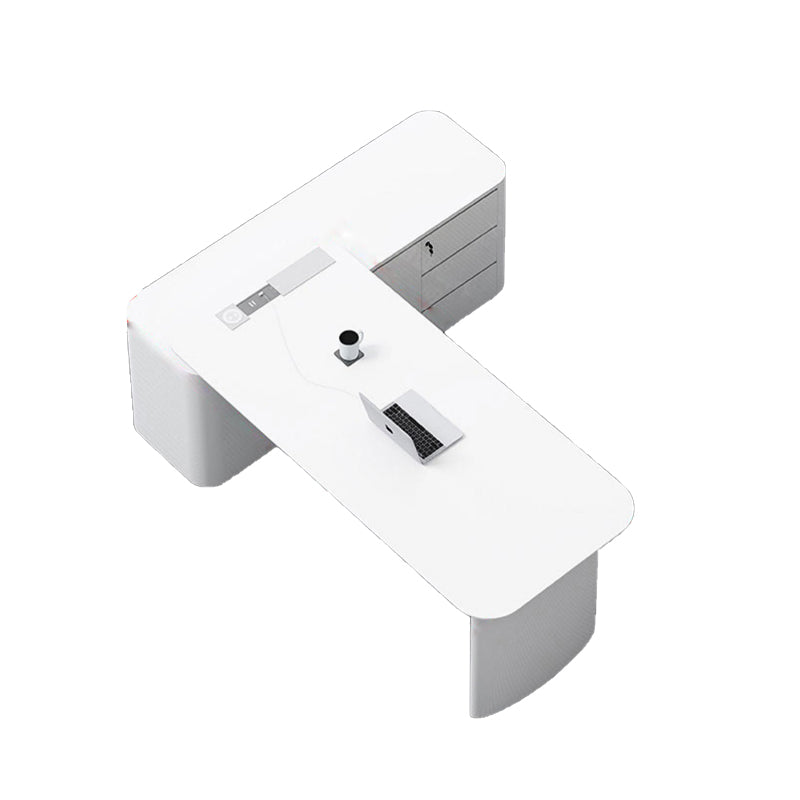 Cabinet de bureau exécutif blanc contemporain Piédestal de bureau en forme de forme en L