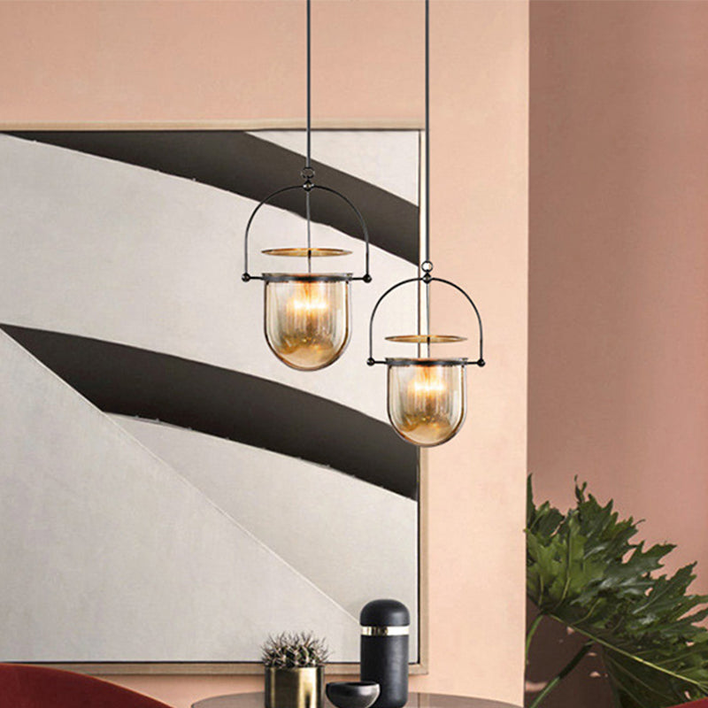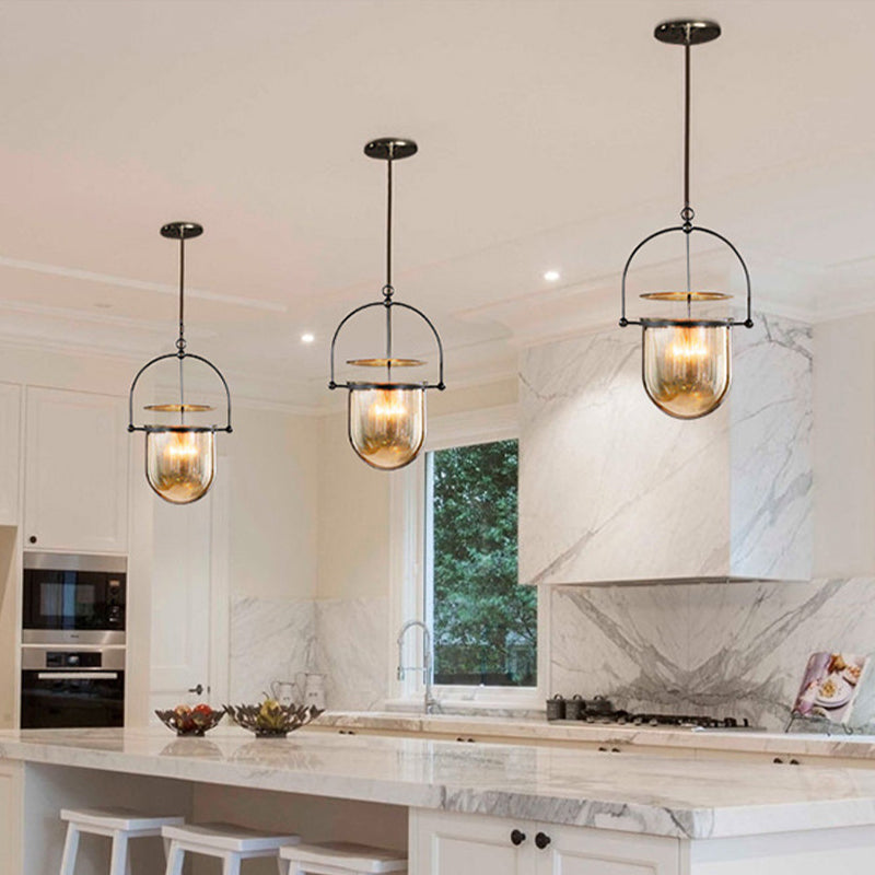 Lampe suspendue en forme de dôme de campagne, plafonnier à 1 tête en verre cognac pour îlot de cuisine