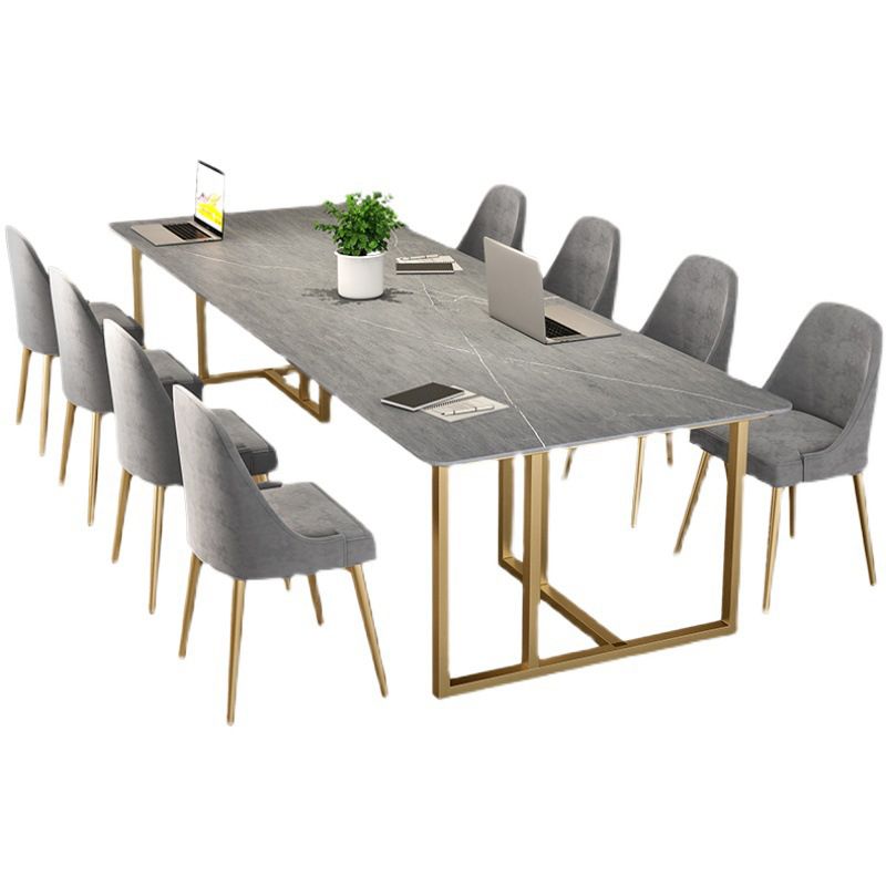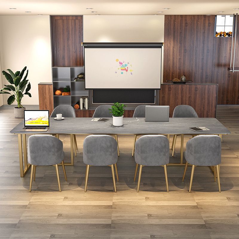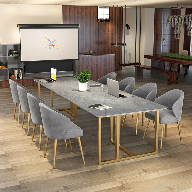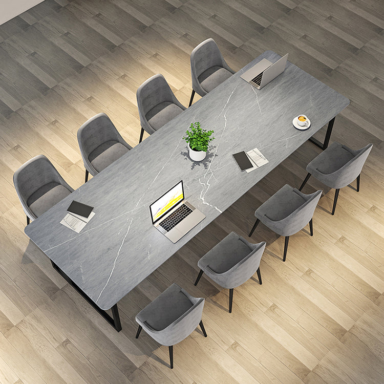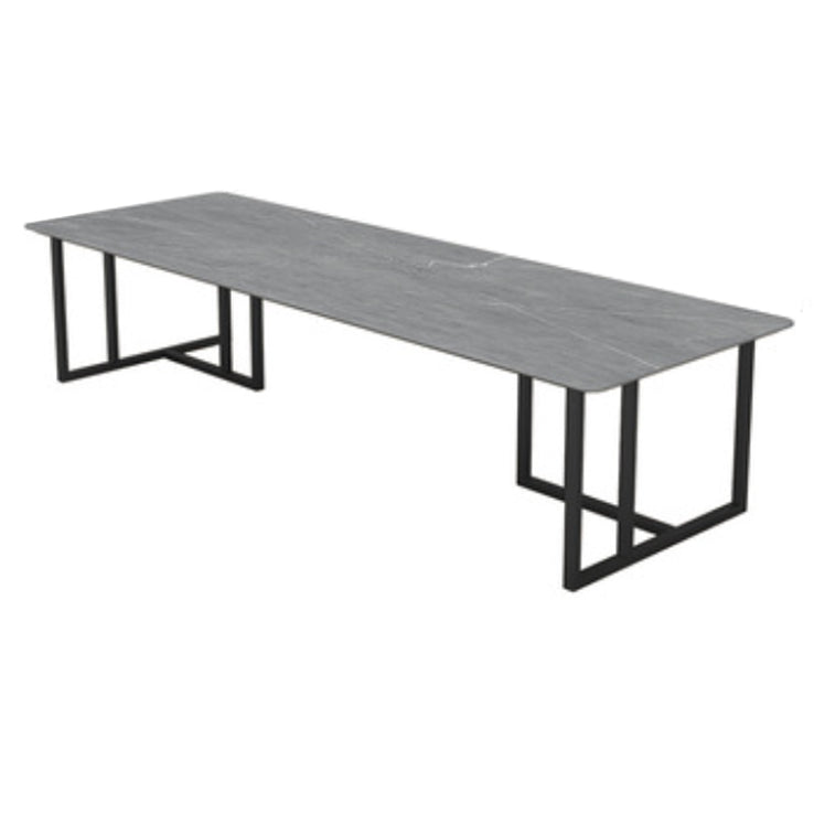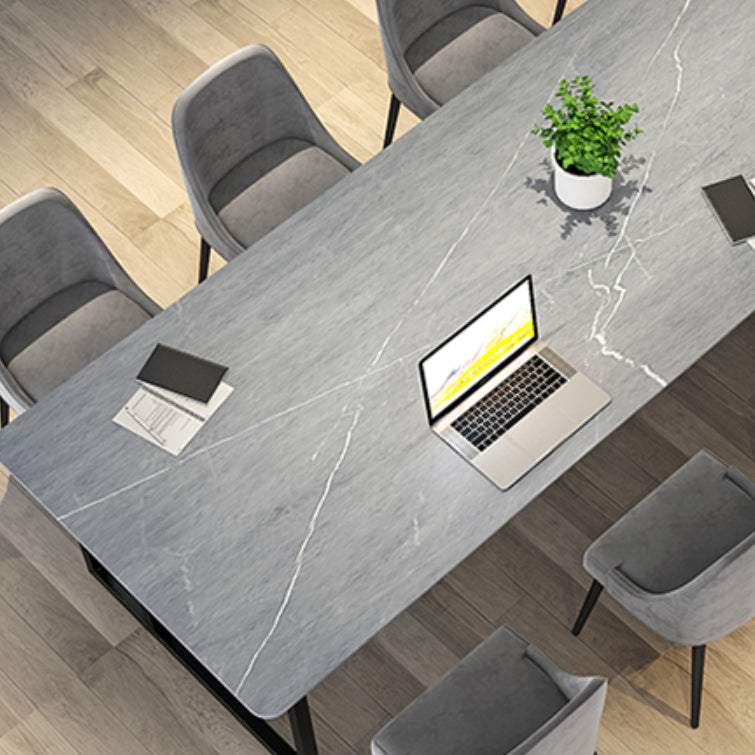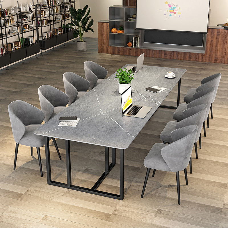Bureau de bureau contemporain incurvé Bureau de traîneau gris avec des jambes en métal