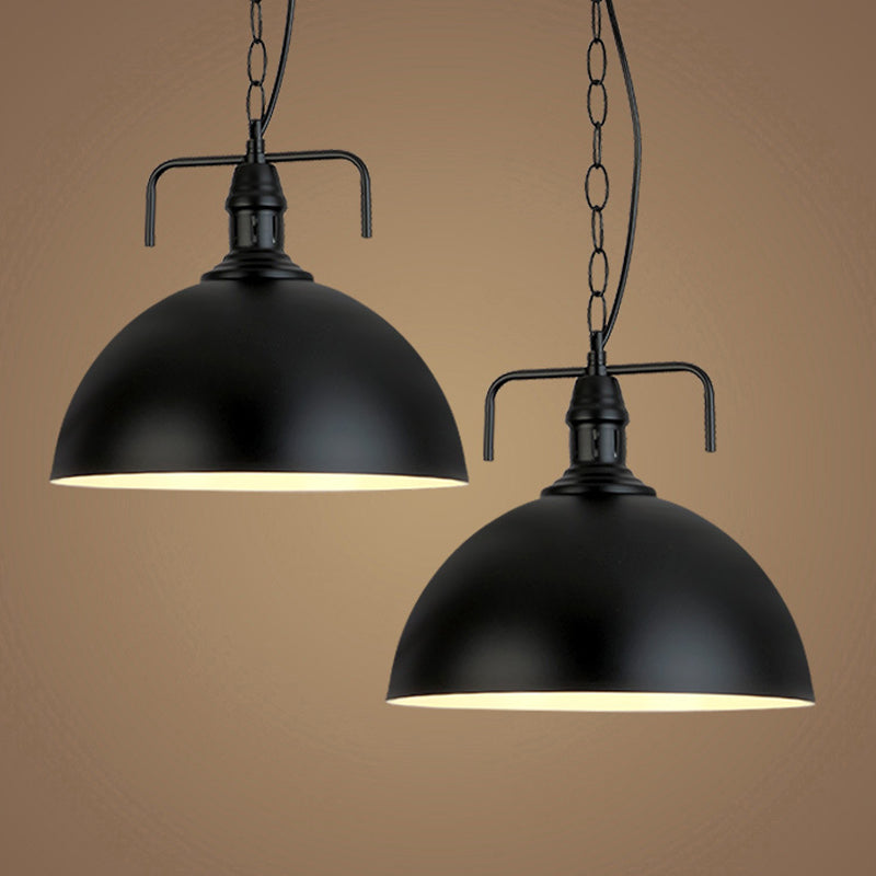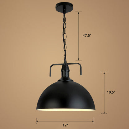 Lampe suspendue en forme de dôme pour salle à manger, en fer industriel, finition noire unique, avec évent