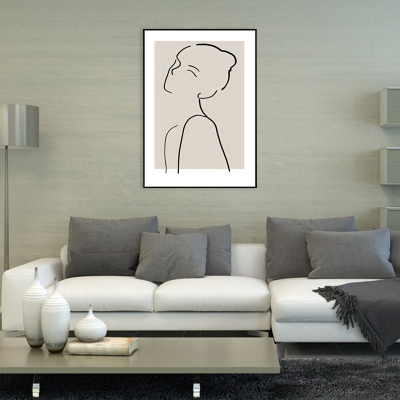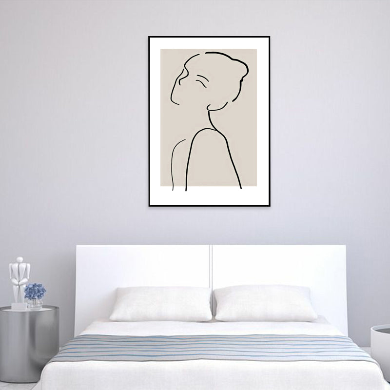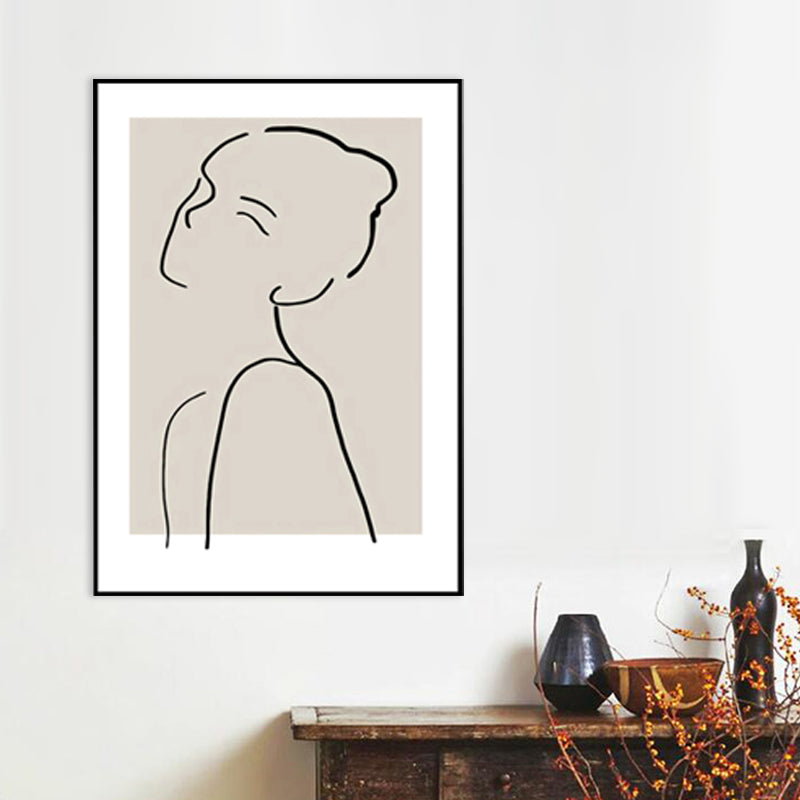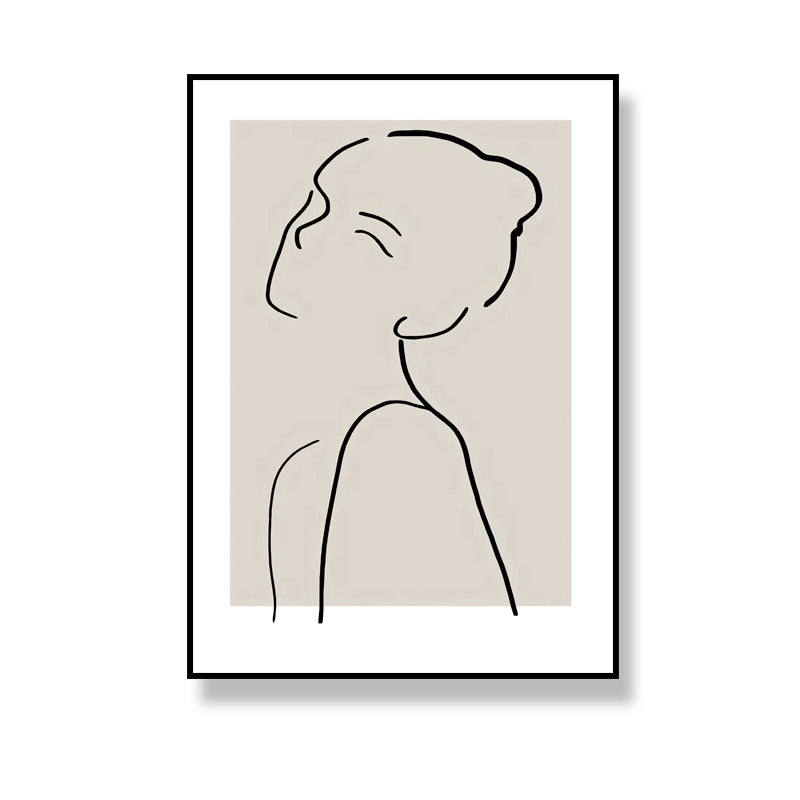 Elegant Woman Line Drawing Canvas Wall Art for Girls Bedroom, Beige and Black, Textured Clearhalo 'Art Gallery' 'Canvas Art' 'Contemporary Art Gallery' 'Contemporary Art' 'Minimalism' 'Minimalist Art Gallery' 'Scandinavian' Arts' 1704997