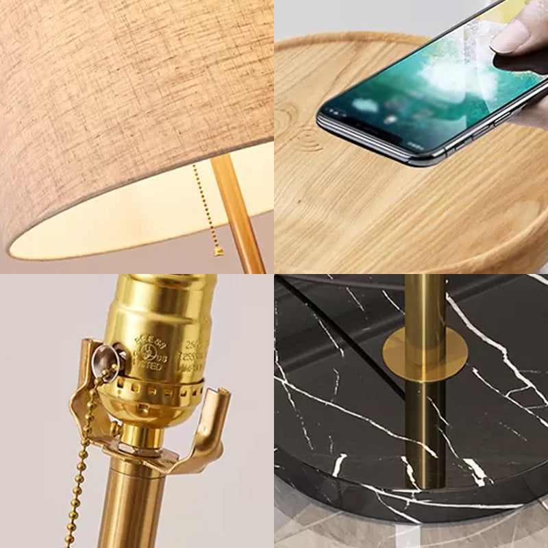 Fabric Empire Shade Floor Lamp Traditional Single Living Room Pull Chain Standing Light with Wooden Tray in Gold-Black Clearhalo 'Floor Lamps' 'Lamps' Lighting' 2064608