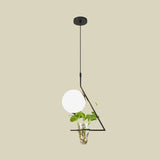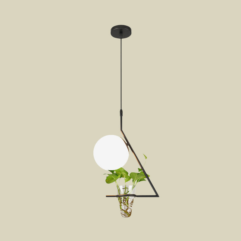Farmhouse Ball Suspension Pendant 1 Head Milk Glass Hanging Light Fixture in Black/Grey/Gold with Plant Cup Clearhalo 'Art Deco Pendants' 'Black' 'Cast Iron' 'Ceiling Lights' 'Ceramic' 'Crystal' 'Industrial Pendants' 'Industrial' 'Metal' 'Middle Century Pendants' 'Pendant Lights' 'Pendants' 'Rustic Pendants' 'Tiffany' Lighting' 1459878